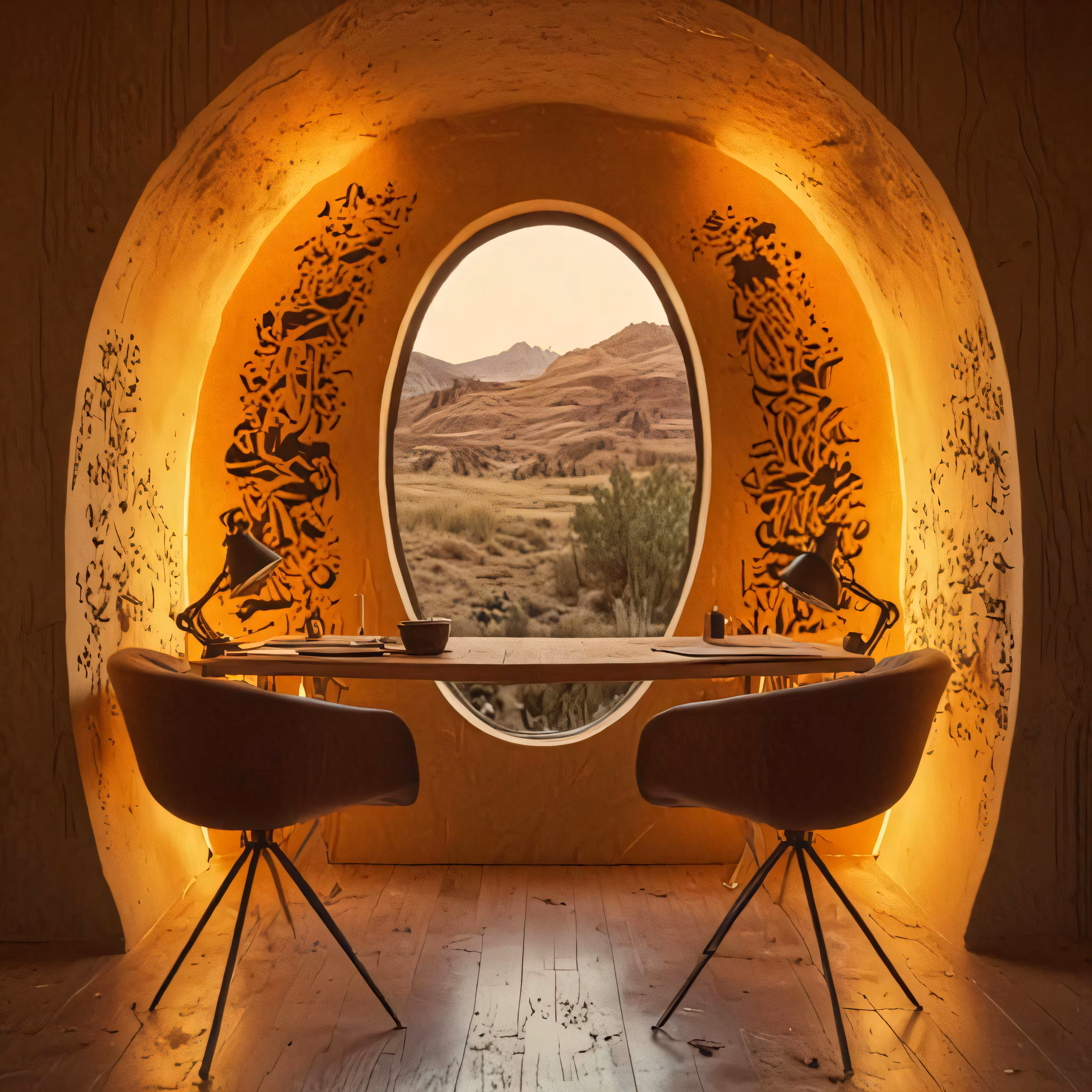 High resolution picture, free to use, the official logo for the 50 /there are two chairs in front of an oval window