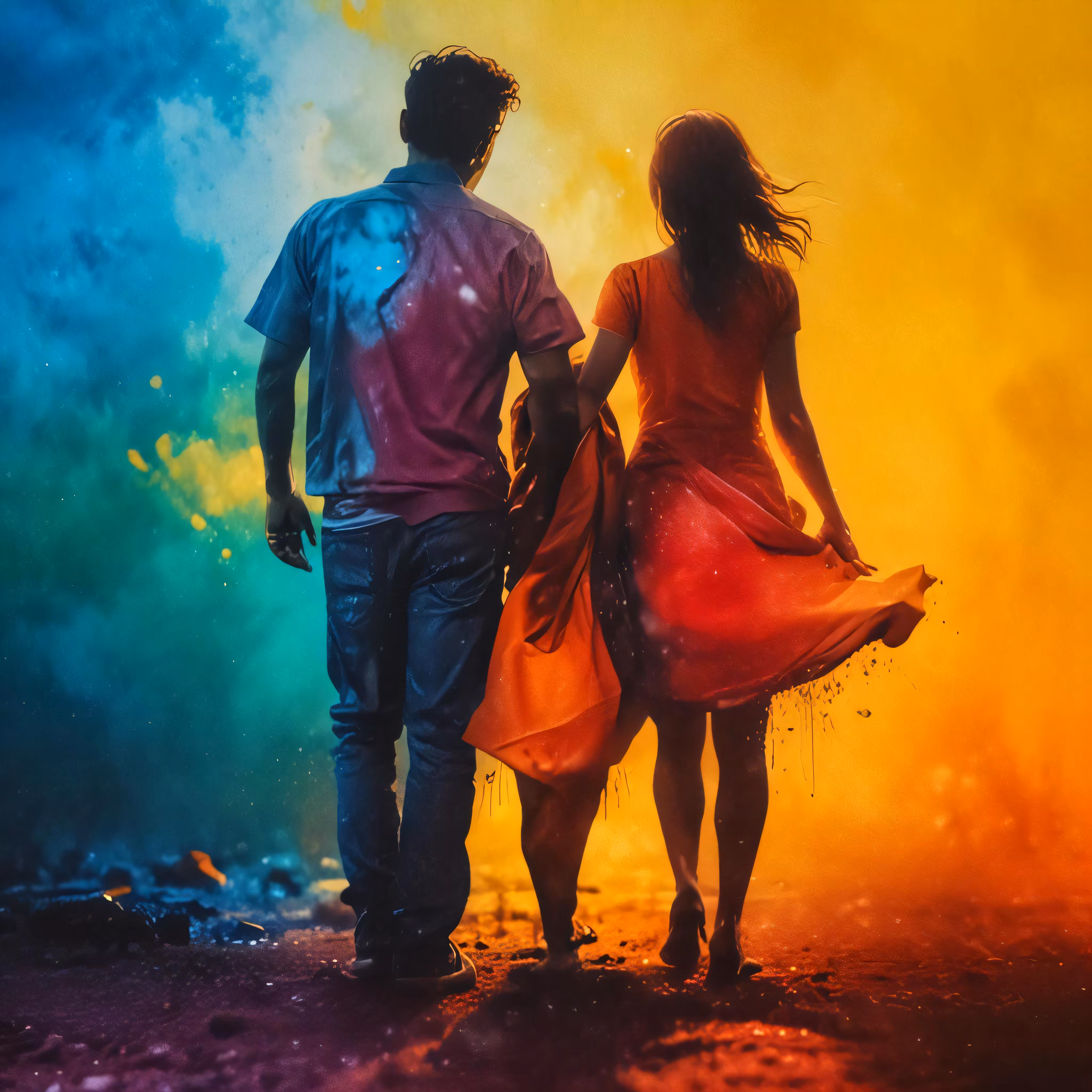 High resolution picture, free to use, the official logo for the 50 /there are two people walking together, one is in color