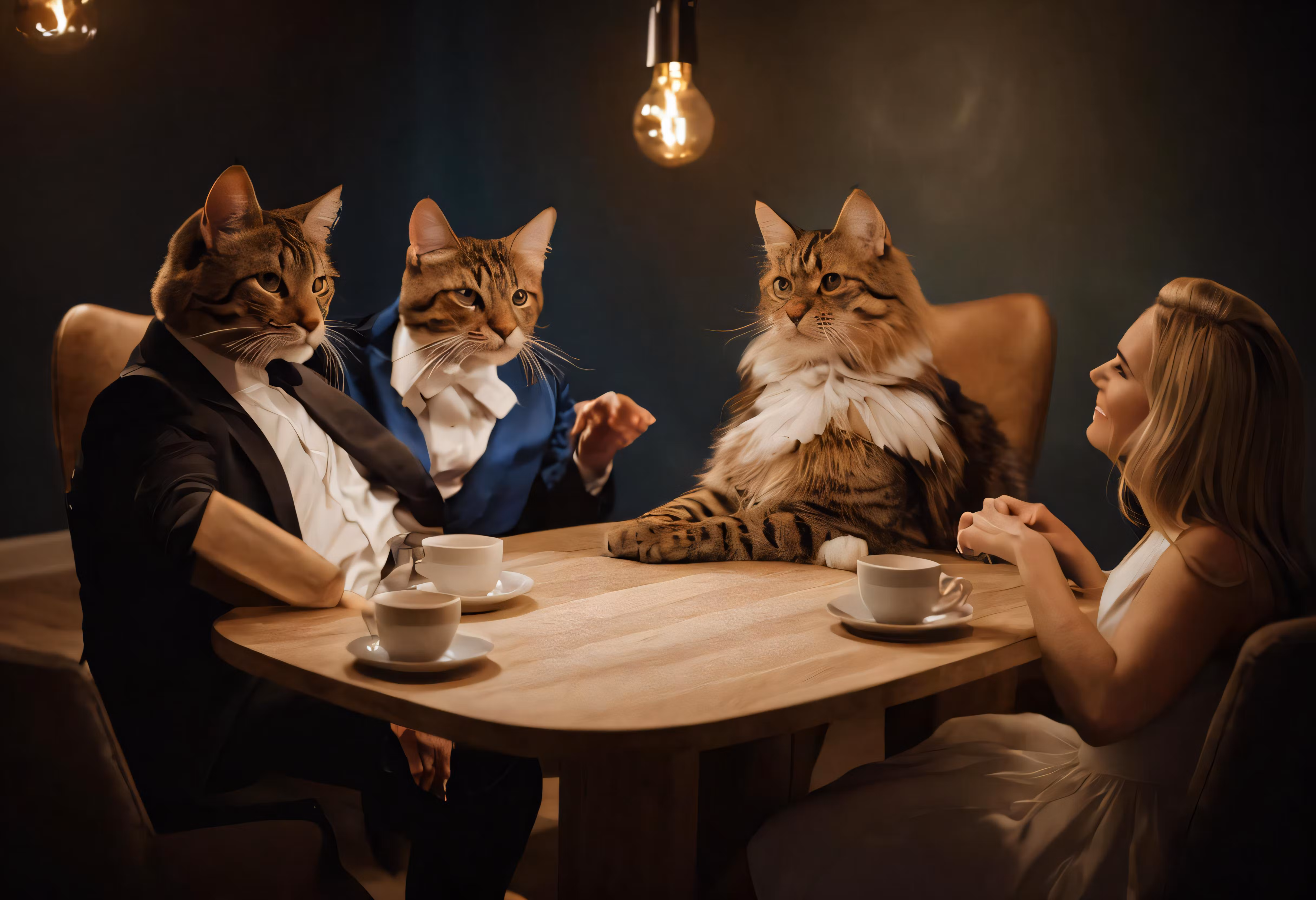 High resolution picture, free to use, the official logo for the 50 /there is a cat sitting at the table with a woman