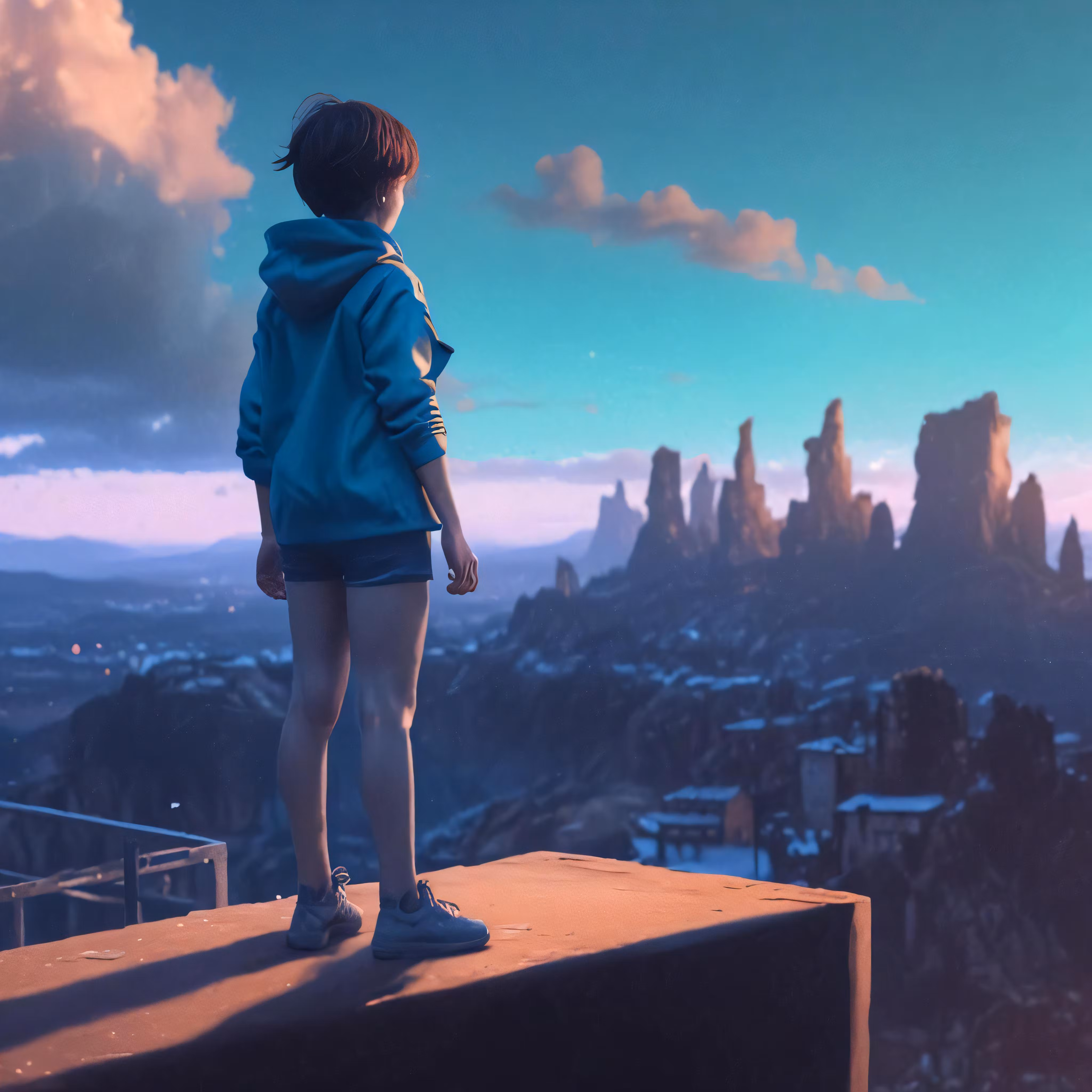 High resolution picture, free to use, the official logo for the 50 /there is a girl standing on the edge of the building
