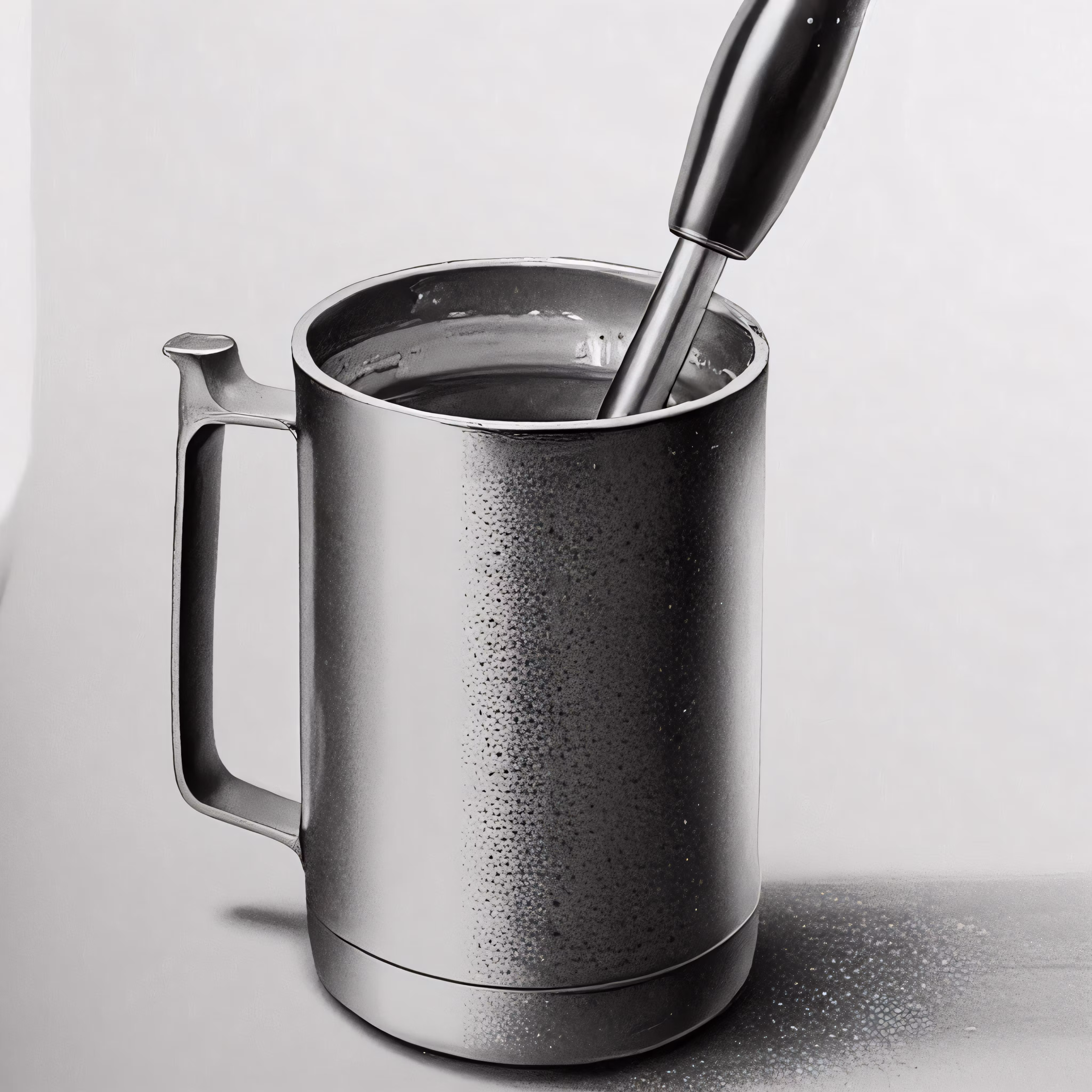 High resolution picture, free to use, the official logo for the 50 /there is a shiny mug and metal spoon inside it
