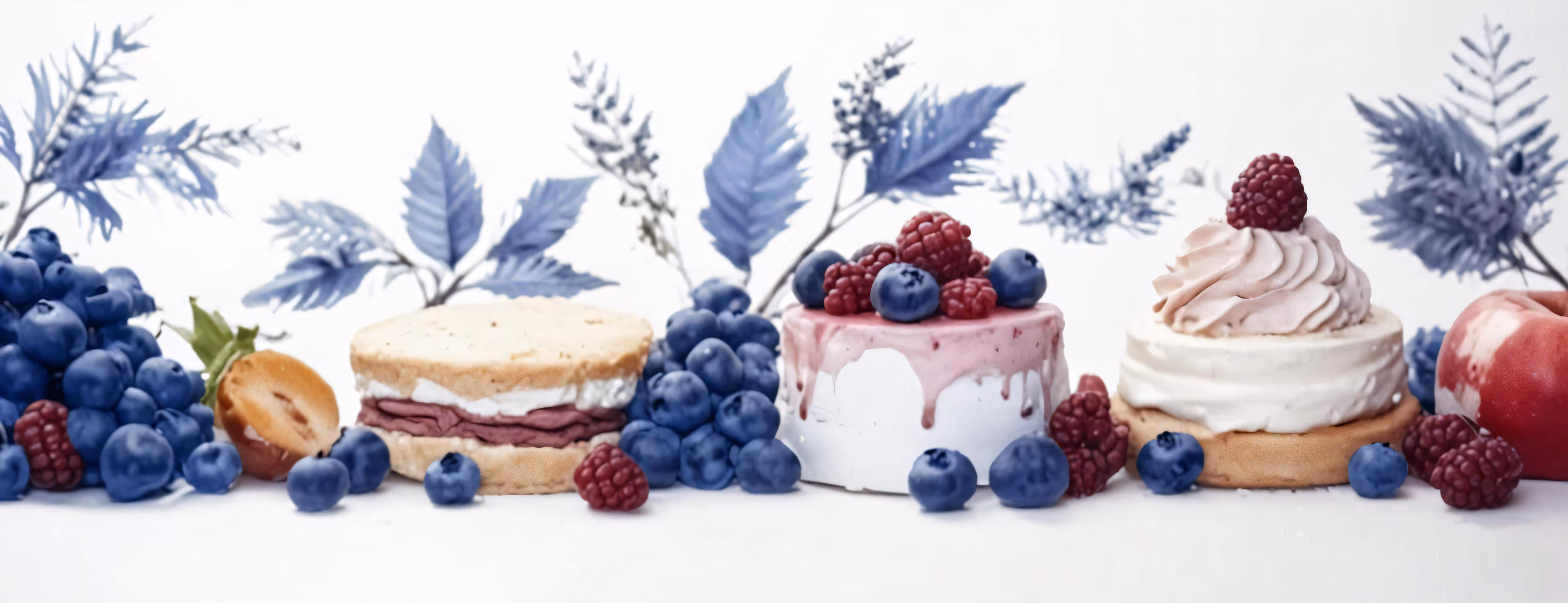 High resolution picture, free to use, the official logo for the 50 /three cakes are next to each other with fresh berries