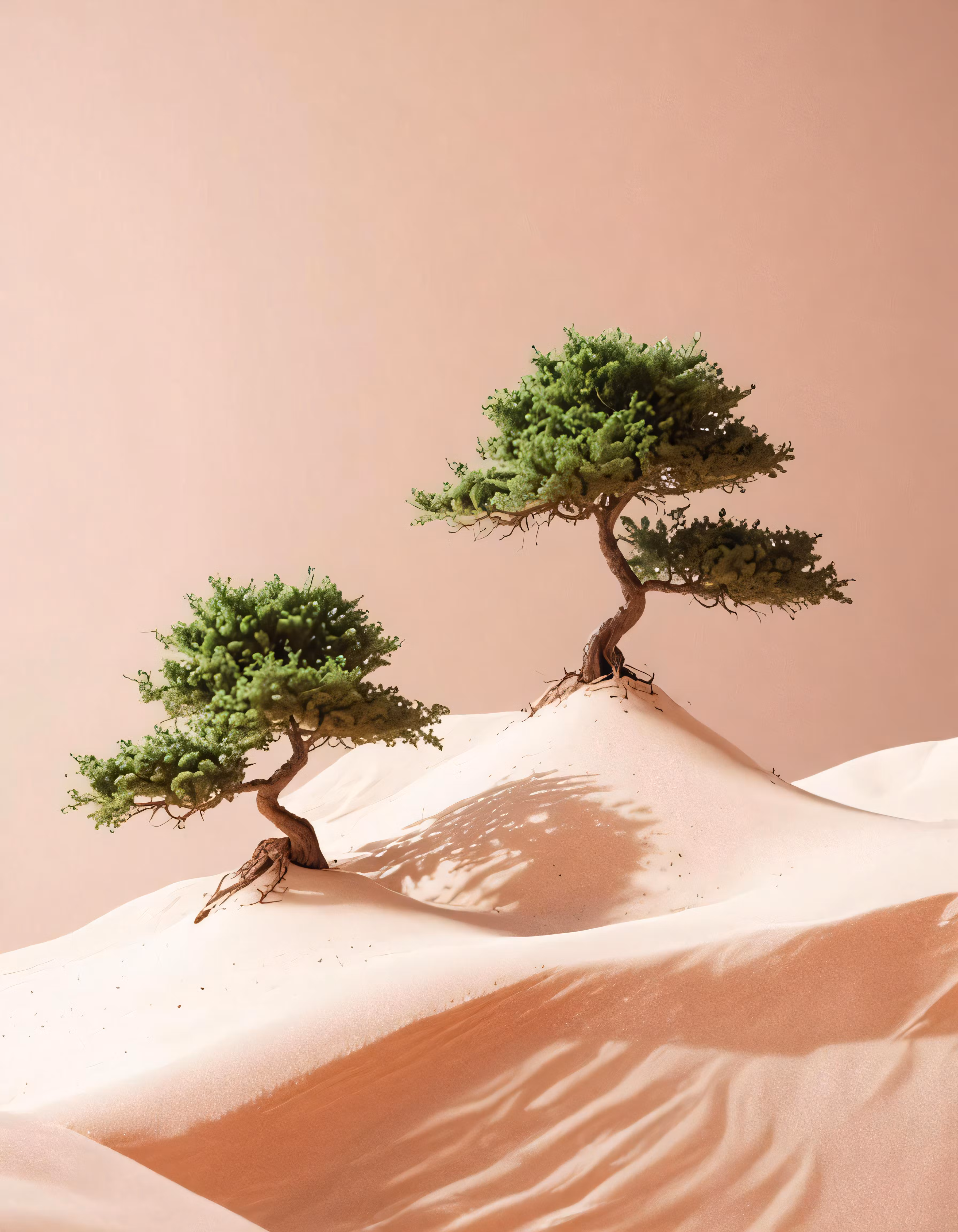 High resolution picture, free to use, the official logo for the 50 /three trees growing from the top of a sand dune