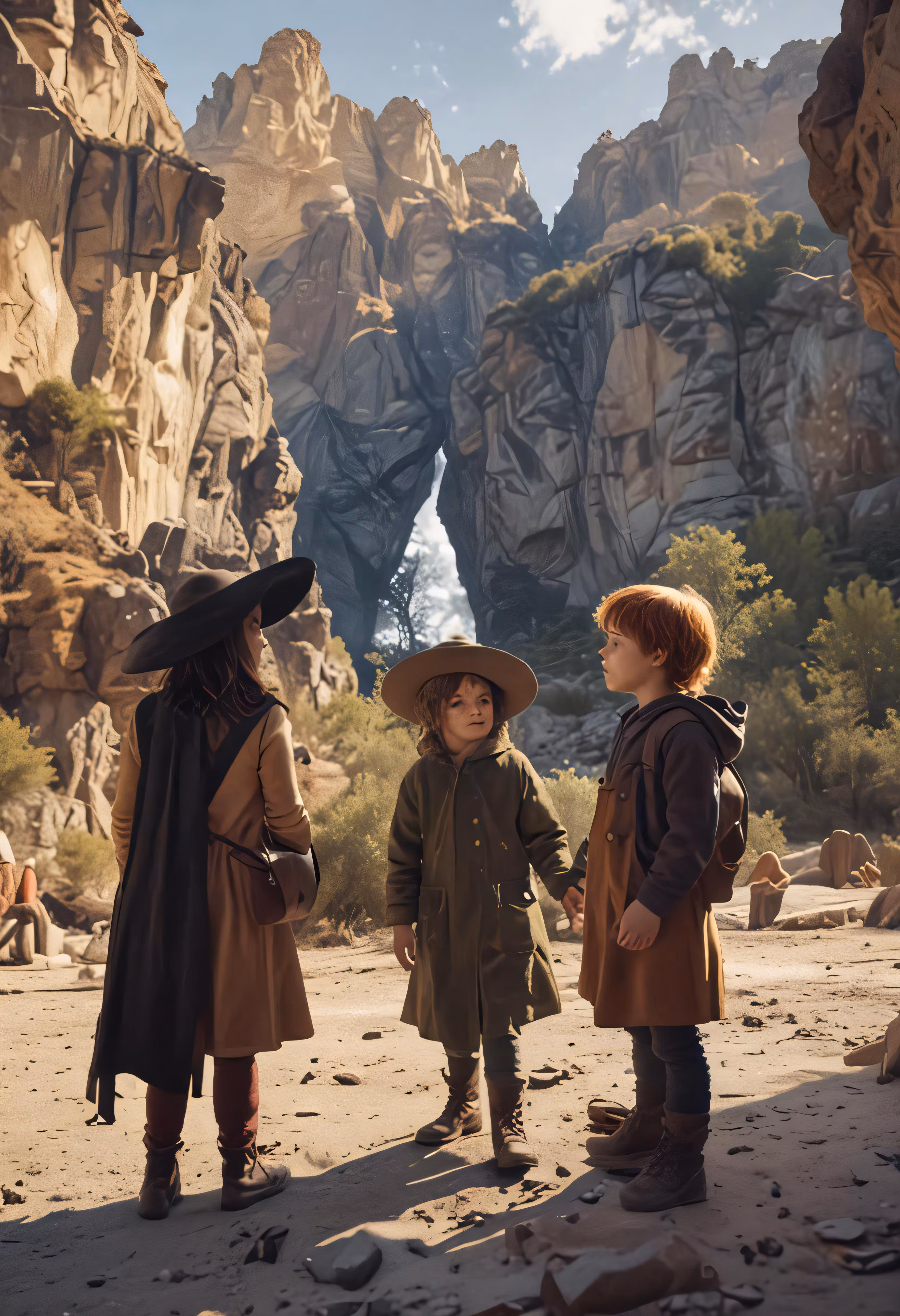 High resolution picture, free to use, the official logo for the 50 /two boys are standing in front of a canyon and two other children are talking