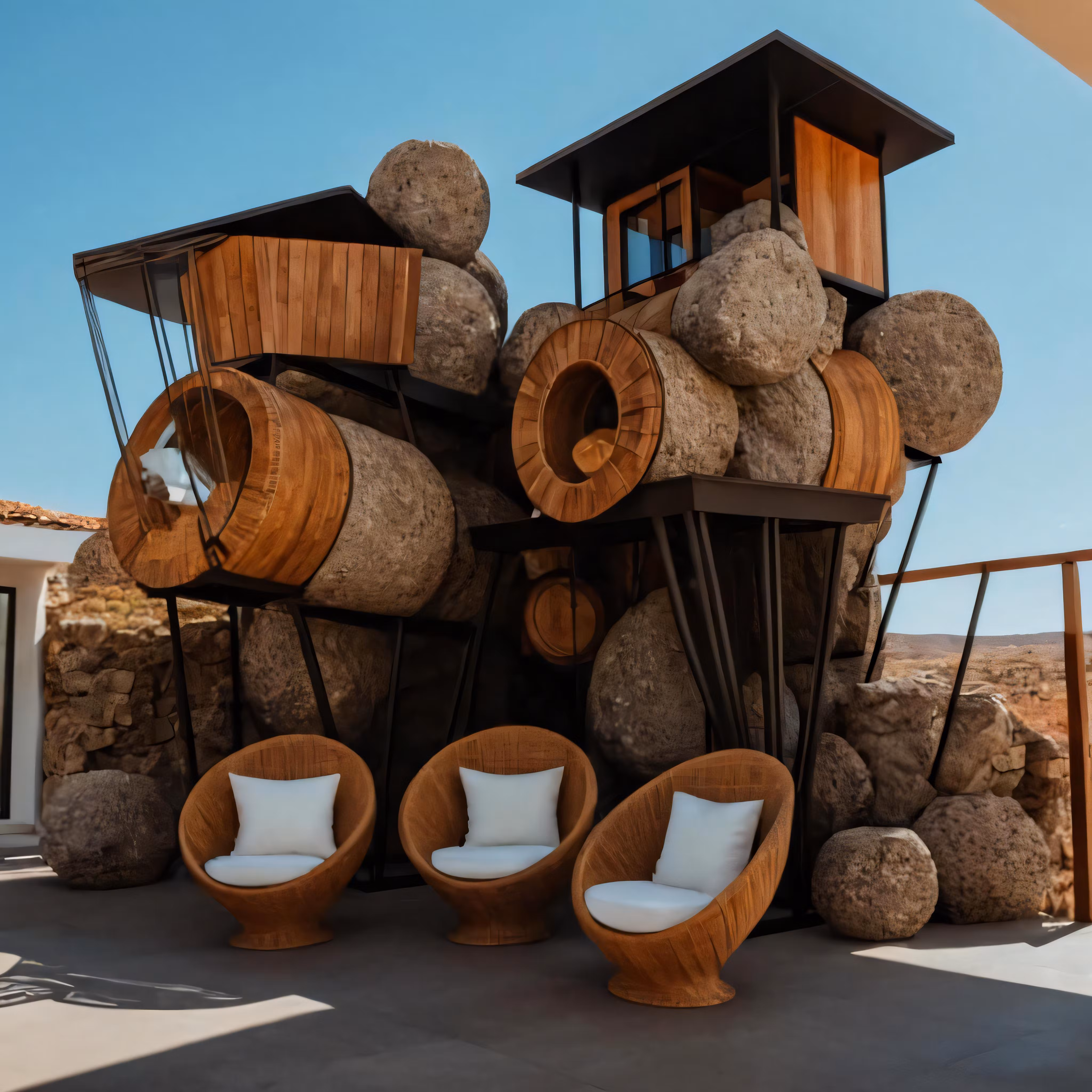 High resolution picture, free to use, the official logo for the 50 /two chairs are sitting in front of a stacked building