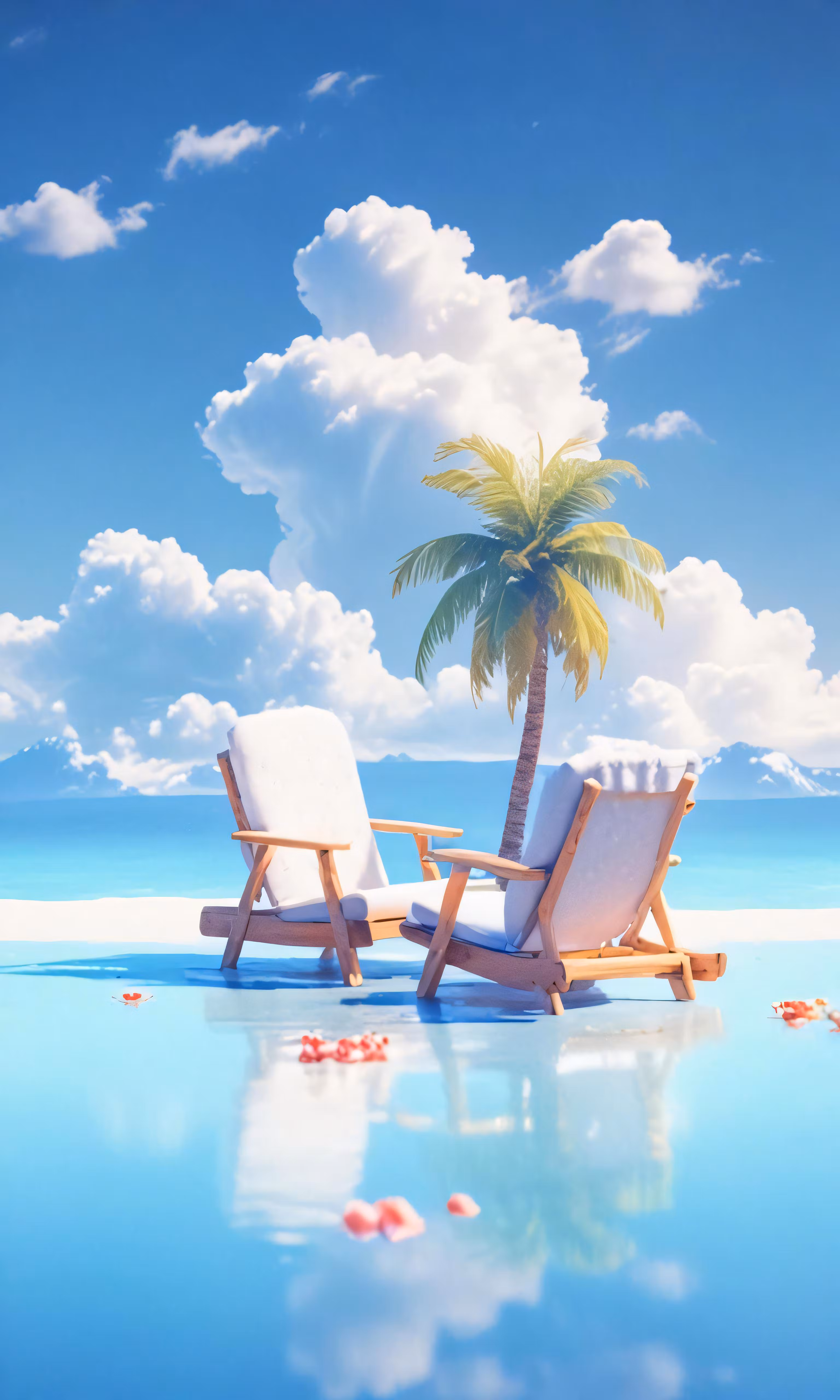 High resolution picture, free to use, the official logo for the 50 /two chairs are sitting on a tropical beach