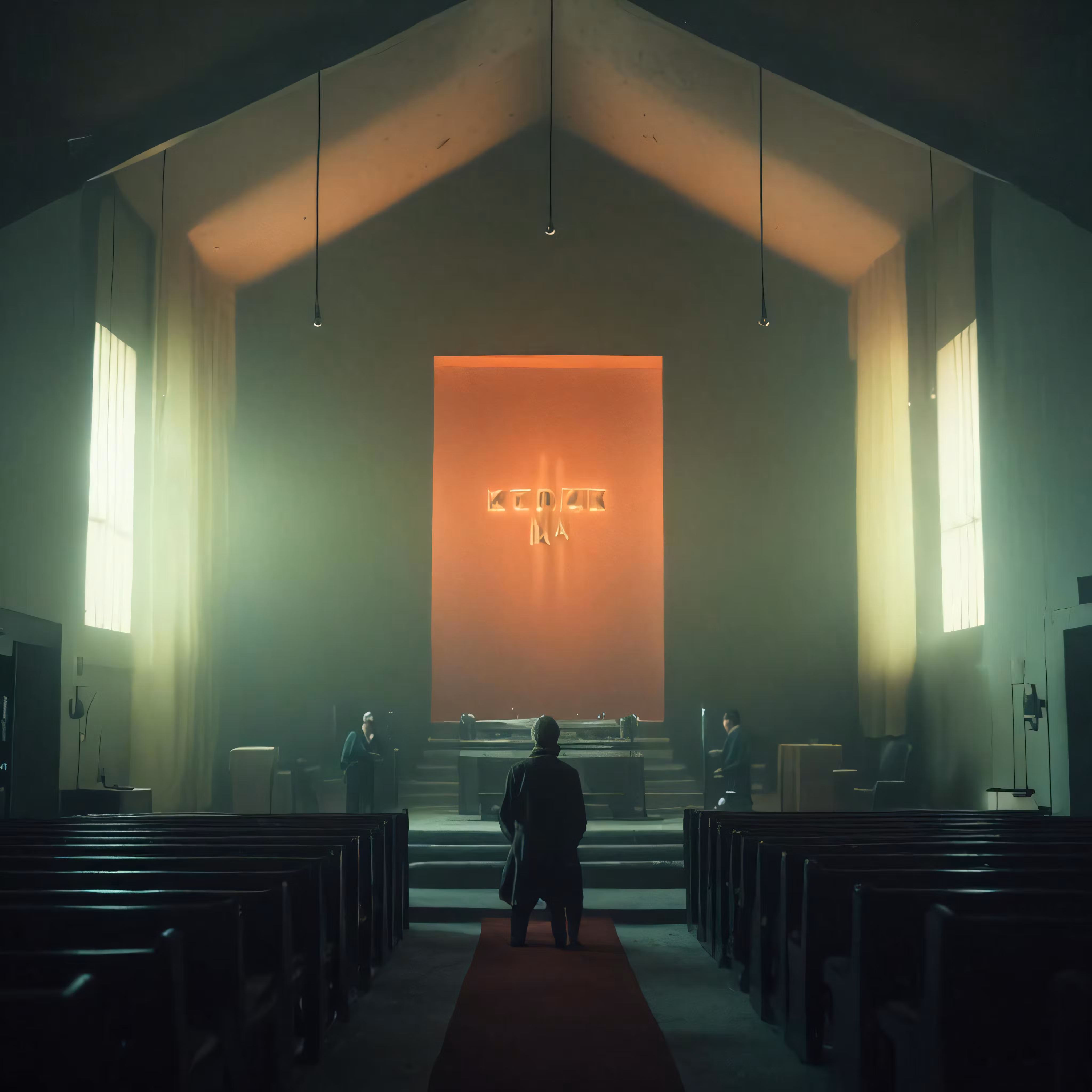 High resolution picture, free to use, the official logo for the 50 /two people standing in a church looking out towards the floor