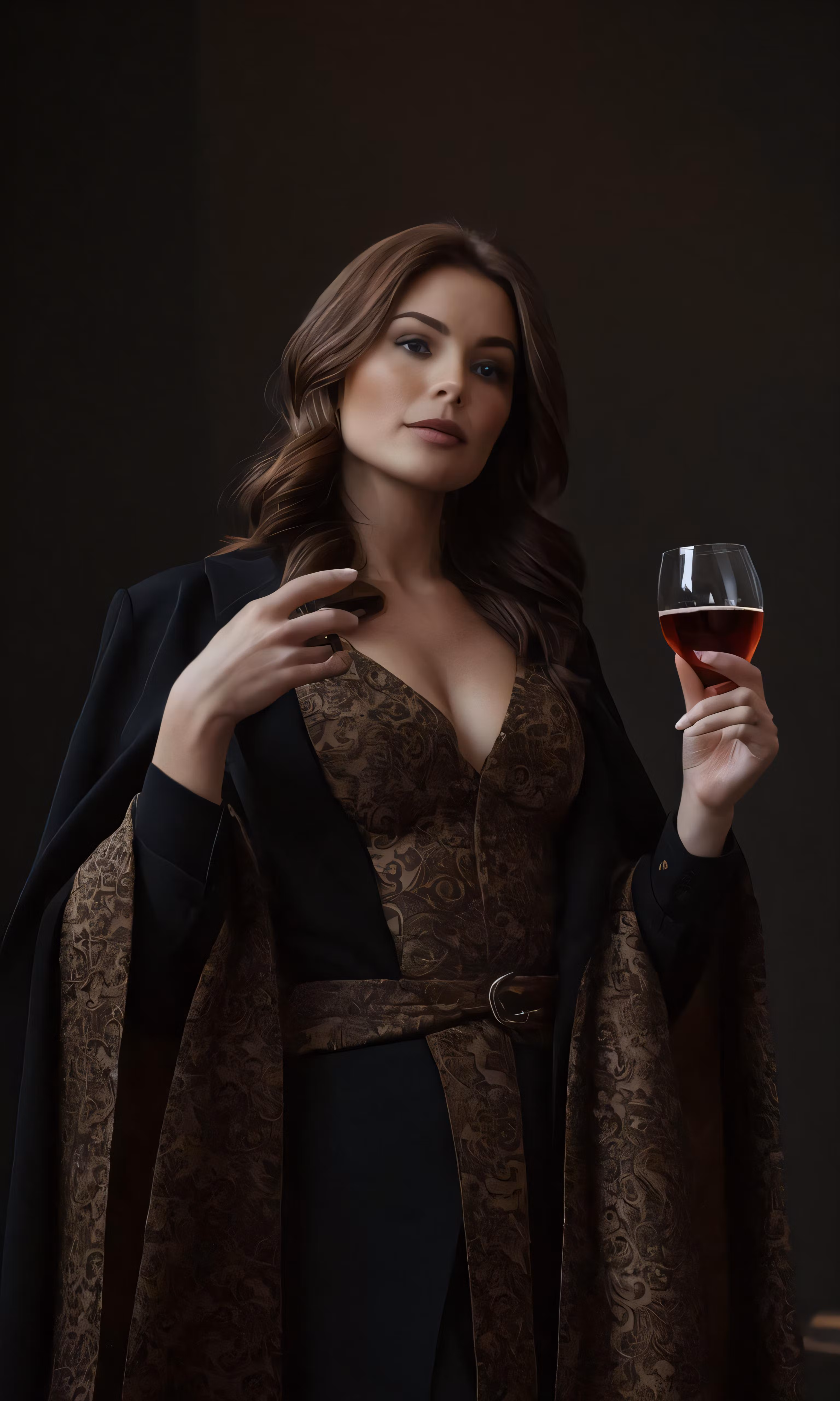 High resolution picture, free to use, the official logo for the 50 /woman dressed up holding a glass of wine