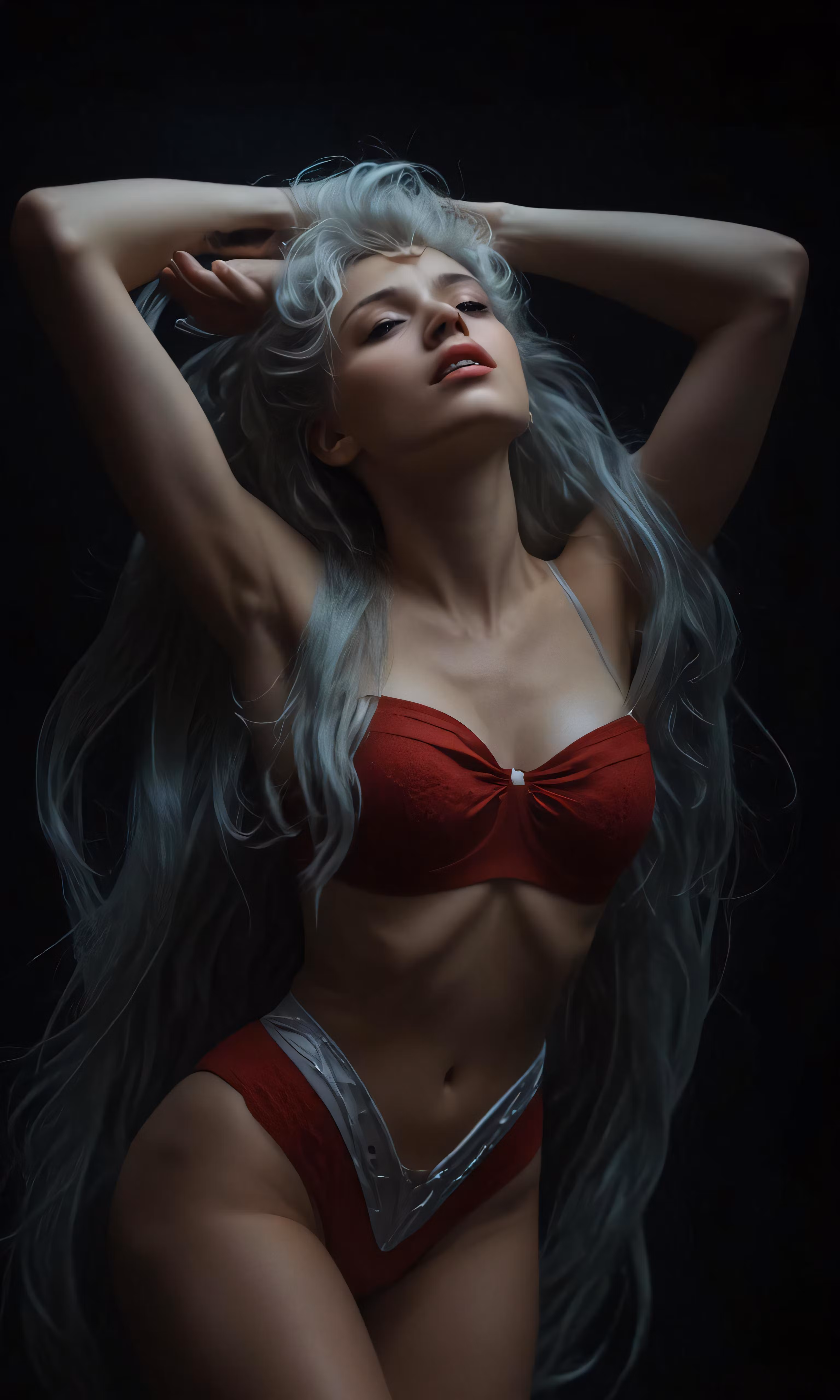 High resolution picture, free to use, the official logo for the 50 /woman in a red underwear with a gray and white hair