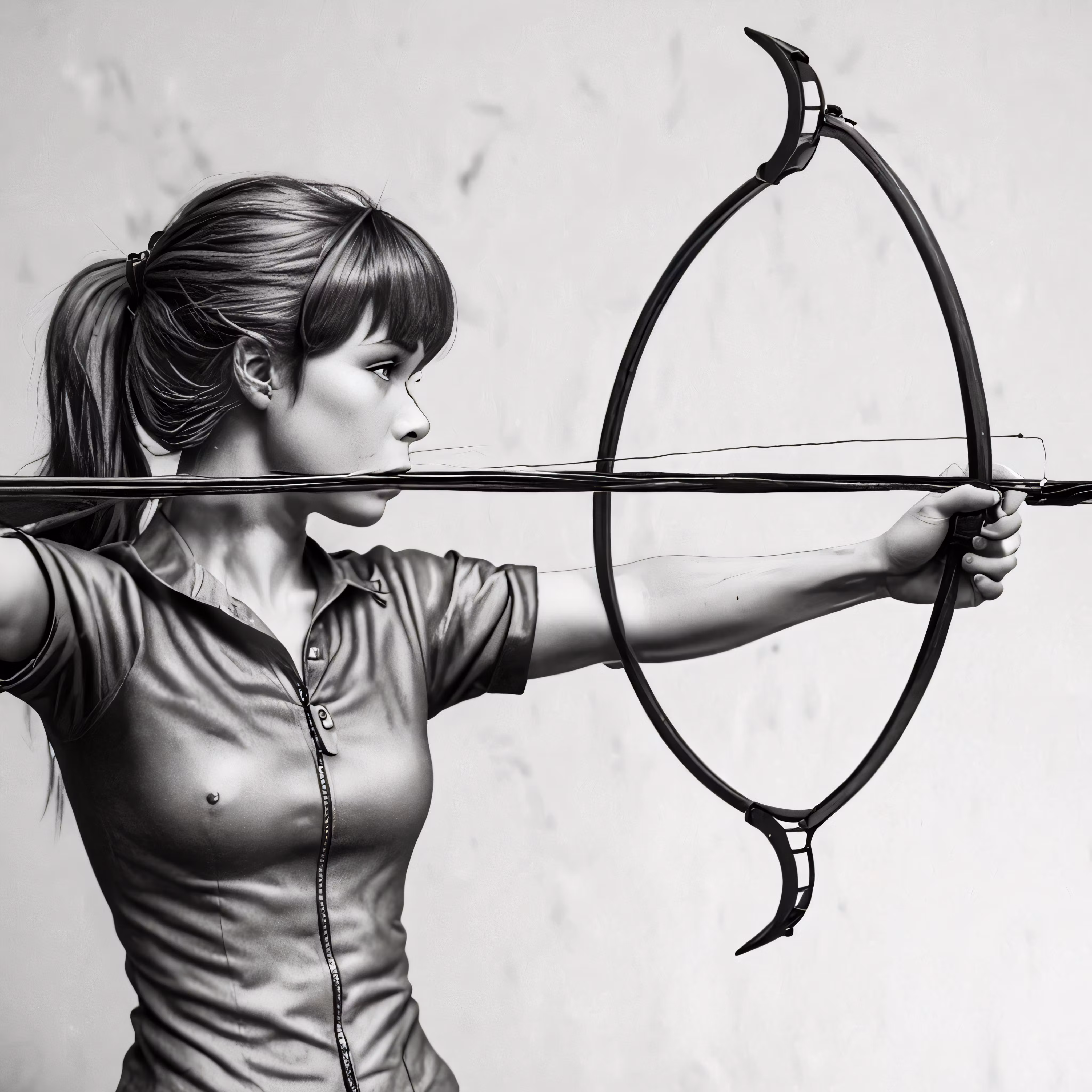 High resolution picture, free to use, the official logo for the 50 /woman with the bow and arrow aiming the bow