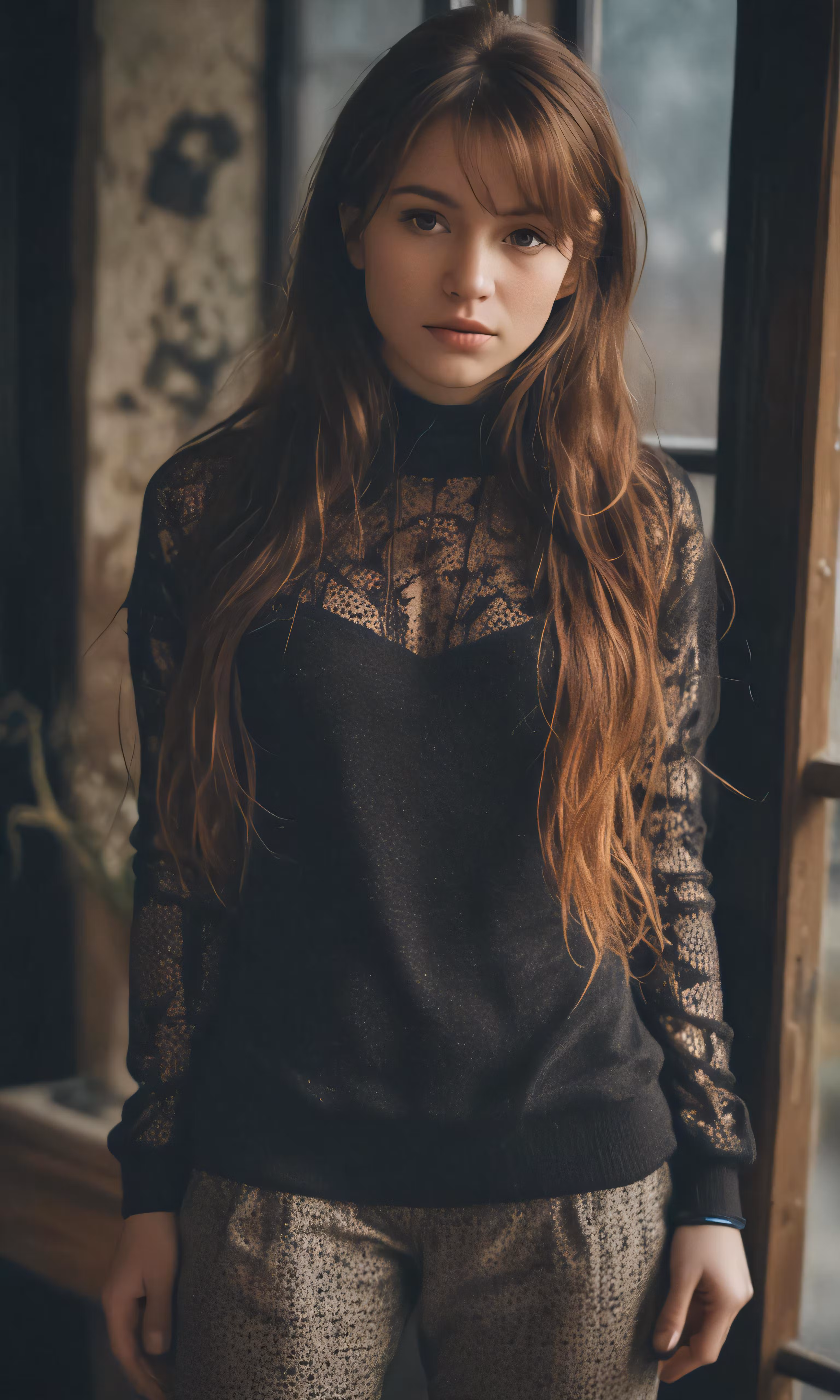 High resolution picture, free to use, the official logo for the 50 /young lady posing by the window at night