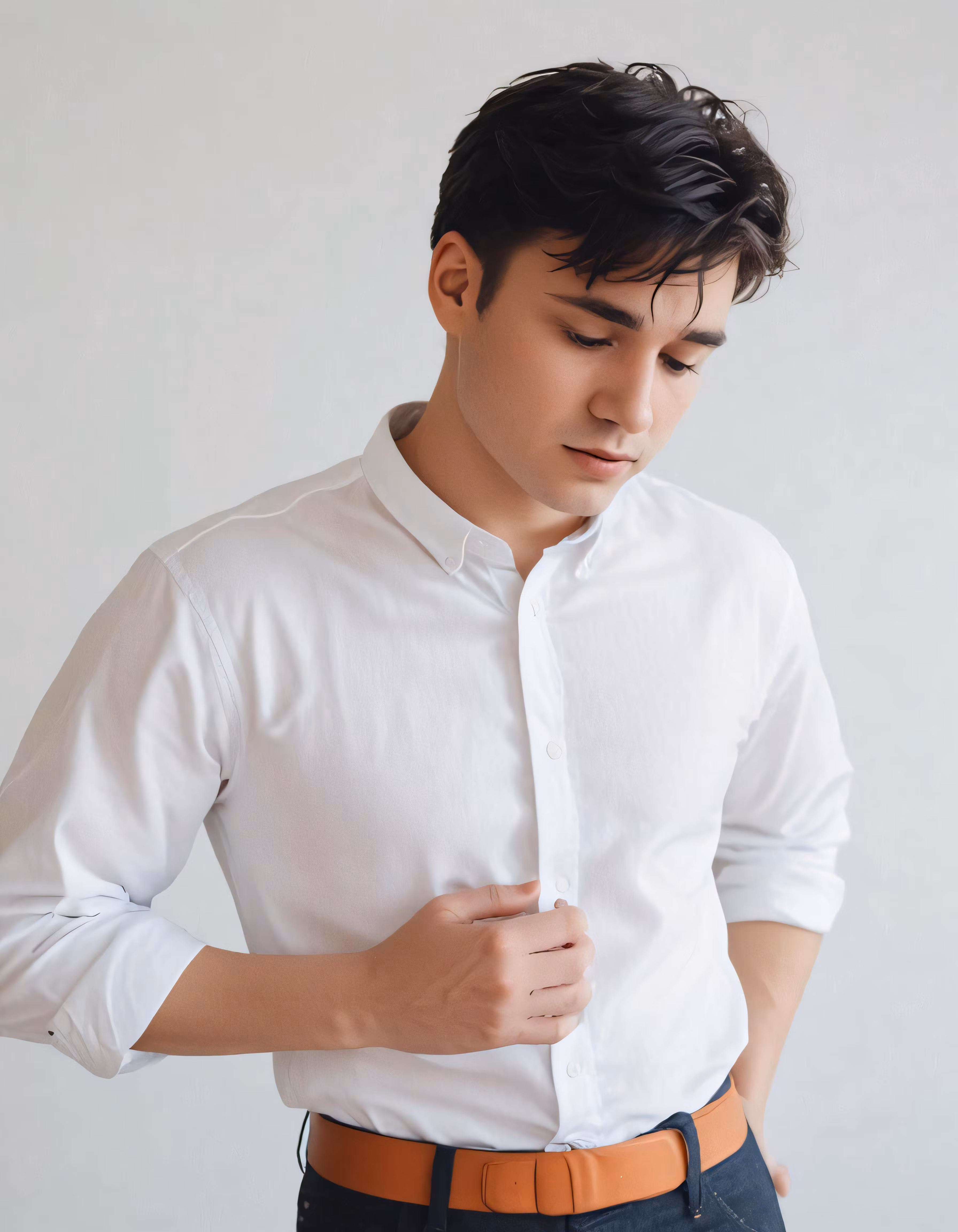High resolution picture, free to use, the official logo for the 50 /young man with white shirt and tie posing for the camera