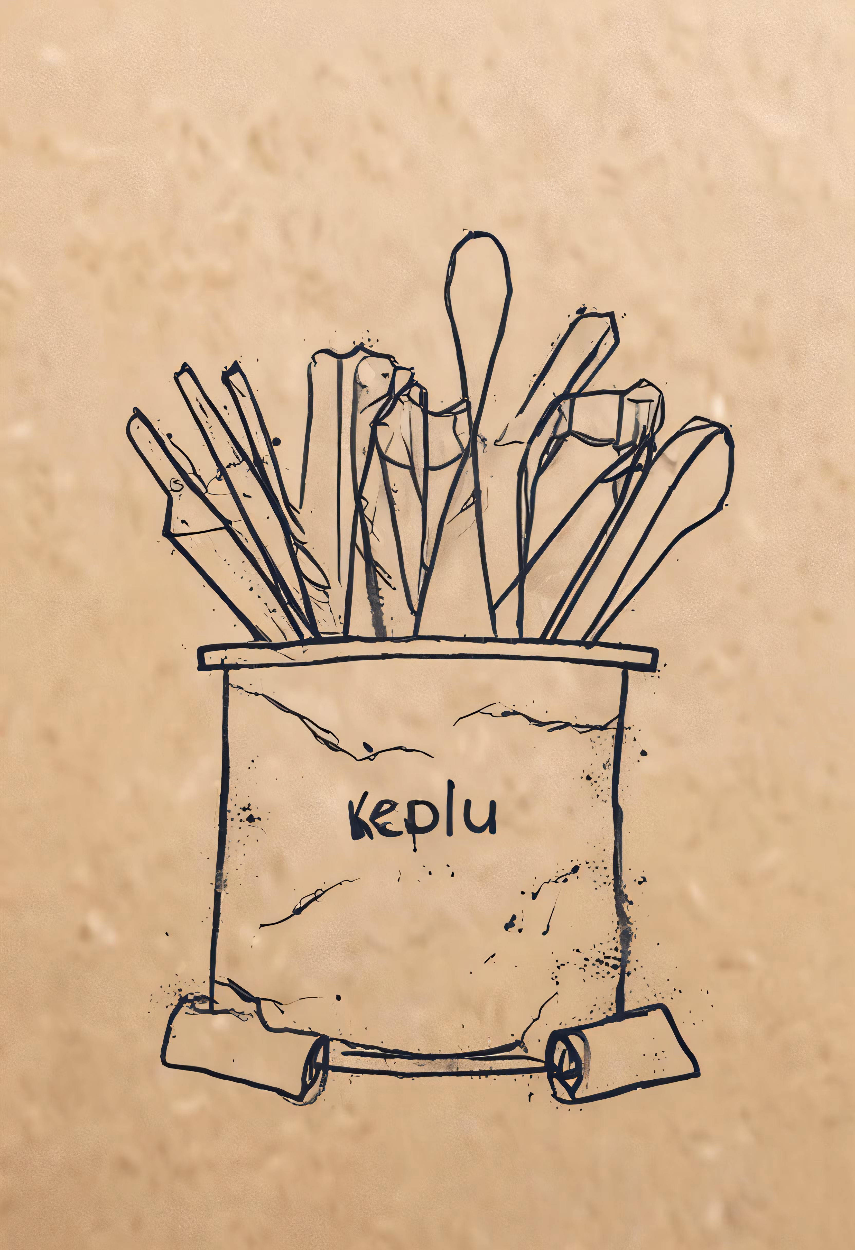 High resolution picture, free to use, the outline of a pot filled with scissors and spoons