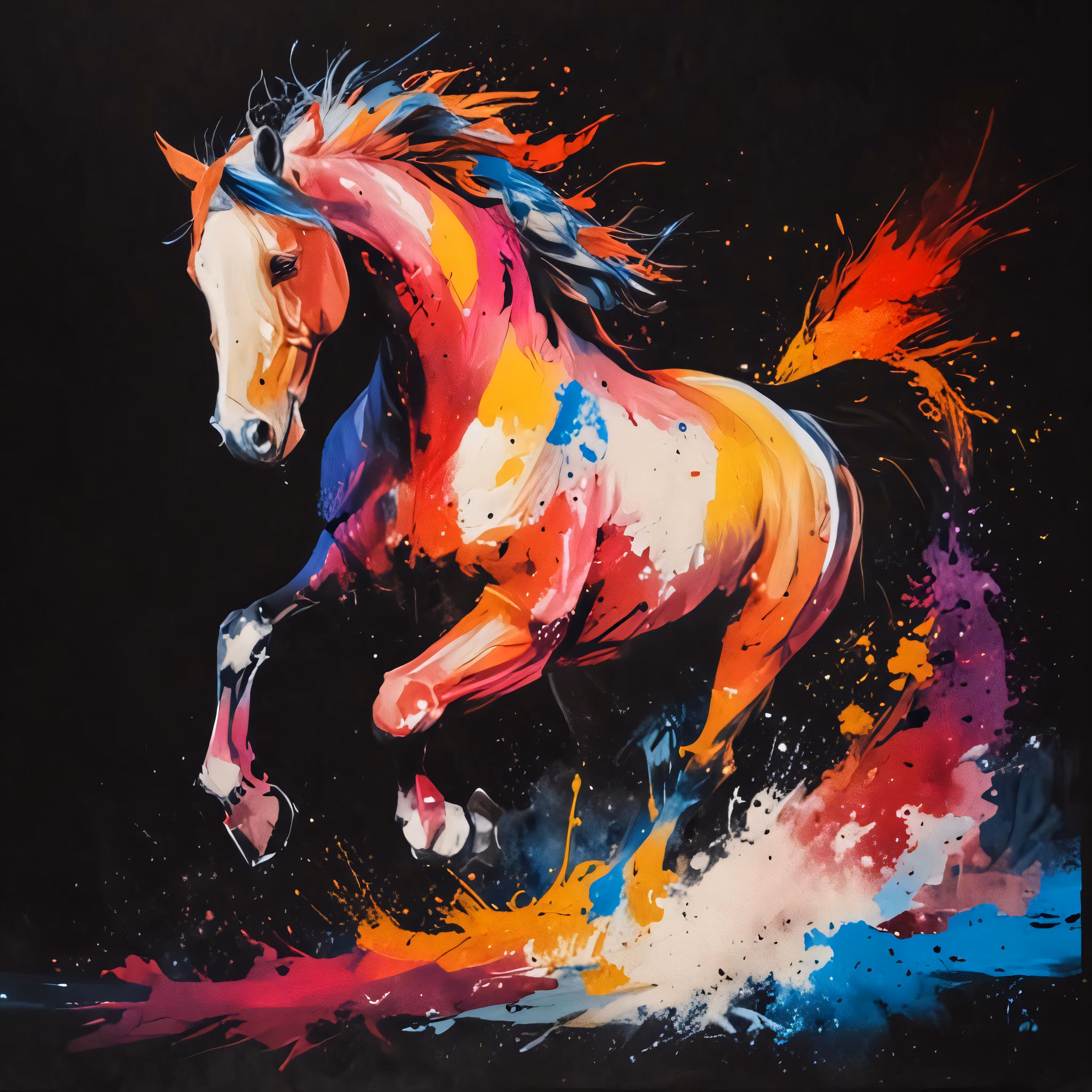 High resolution picture, free to use, the paint covered horse is on the black wall