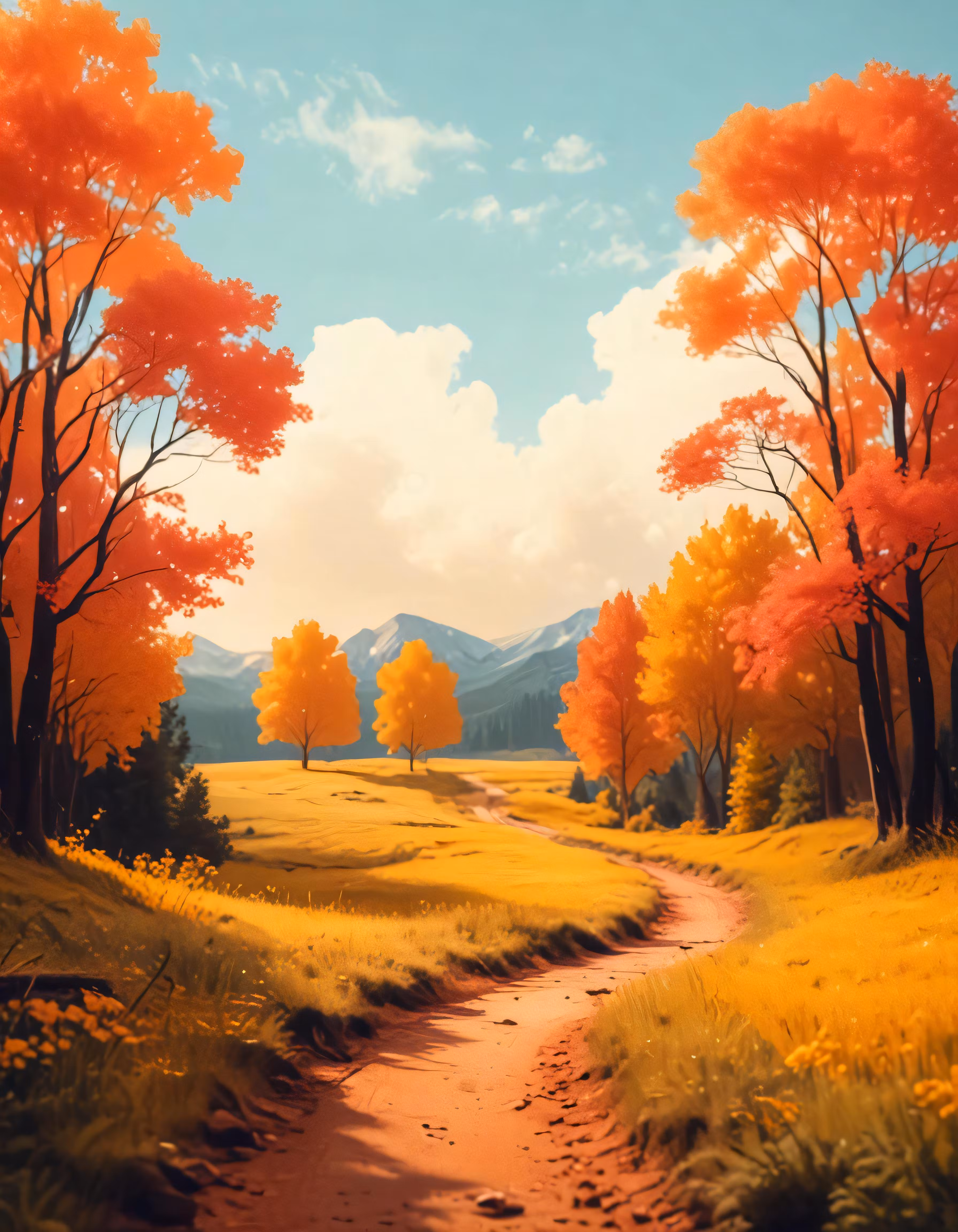 High resolution picture, free to use, the painting is of an autumn landscape