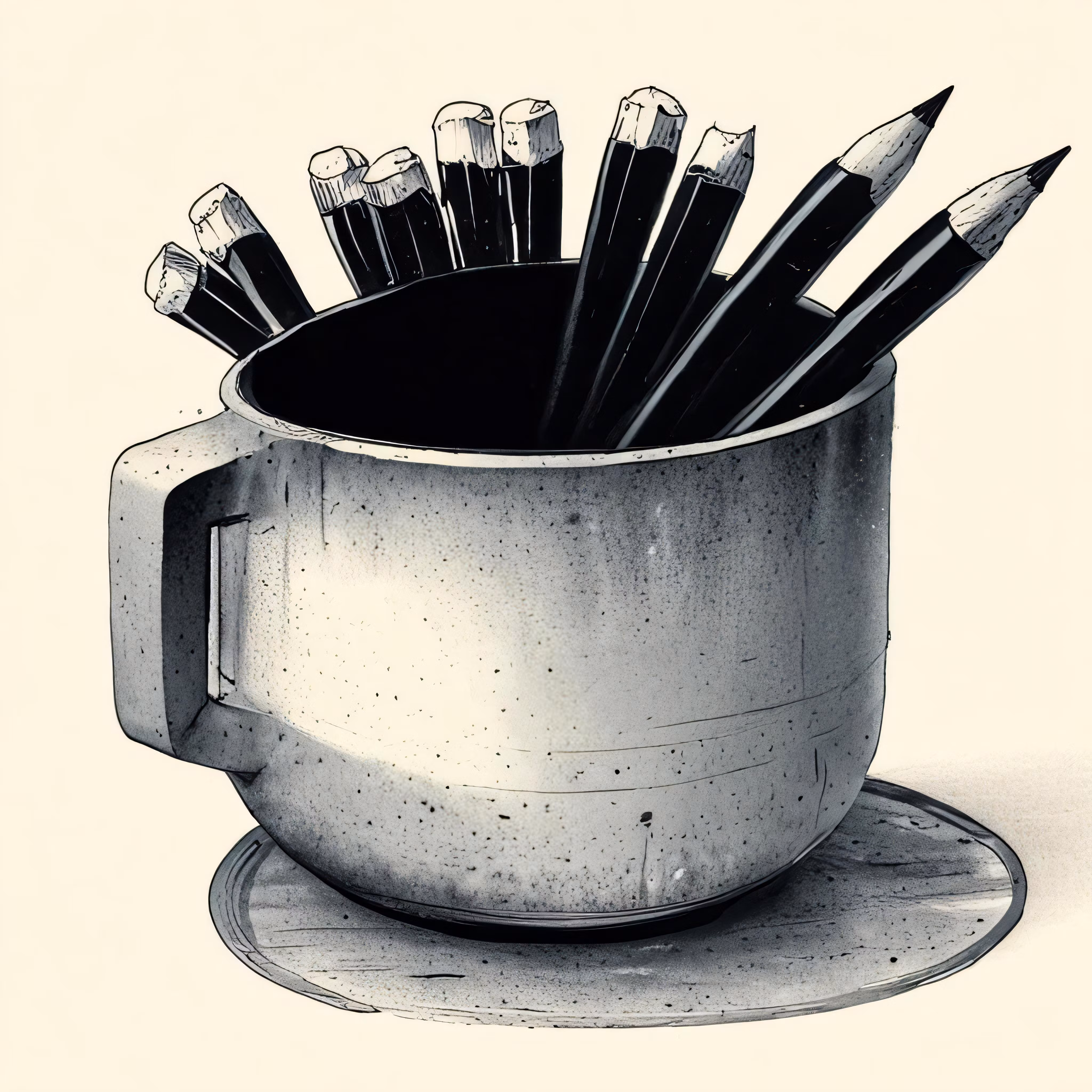 High resolution picture, free to use, the pencils are in a cup, sitting on top of the plate