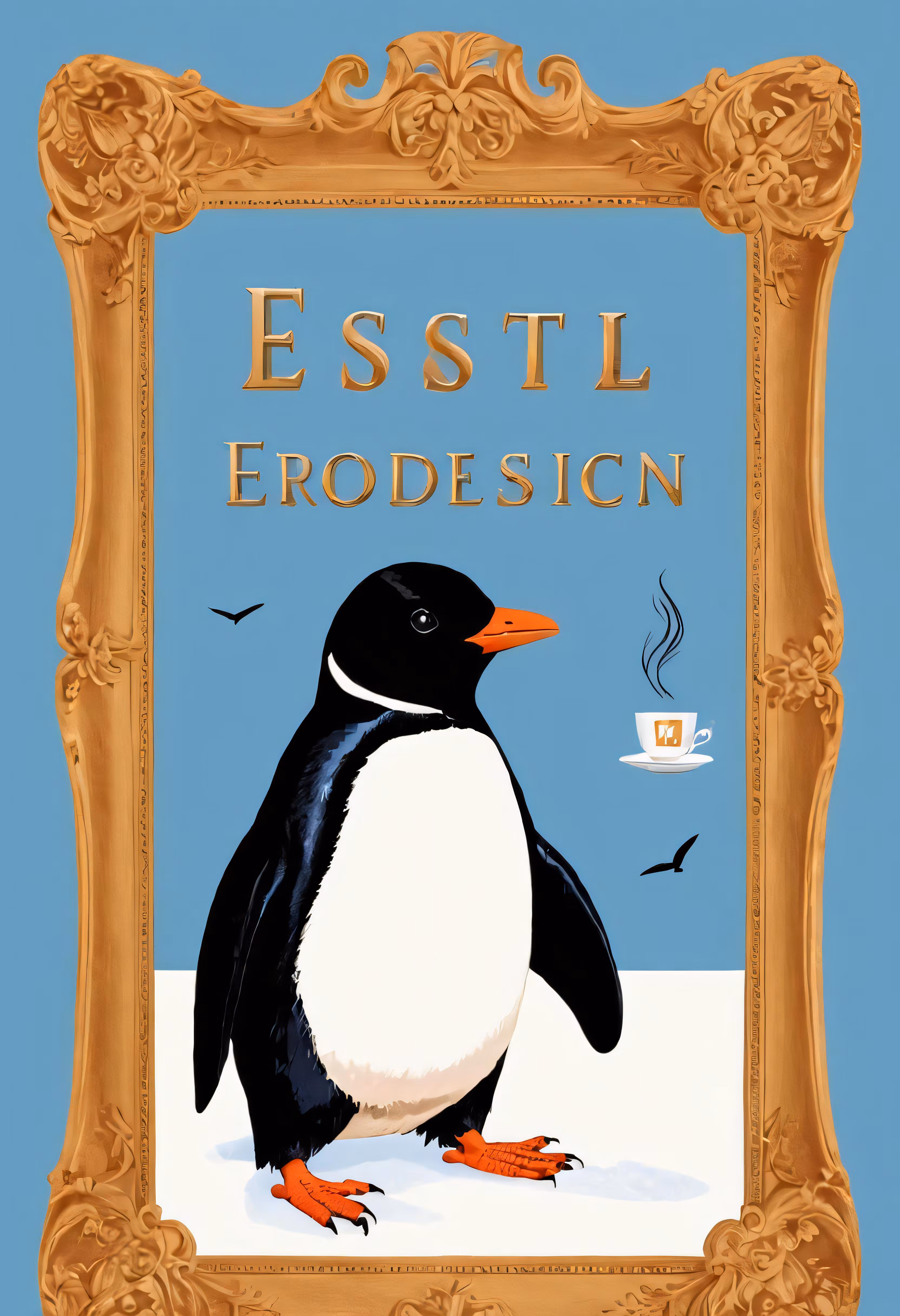 High resolution picture, free to use, the penguin is standing next to a cup