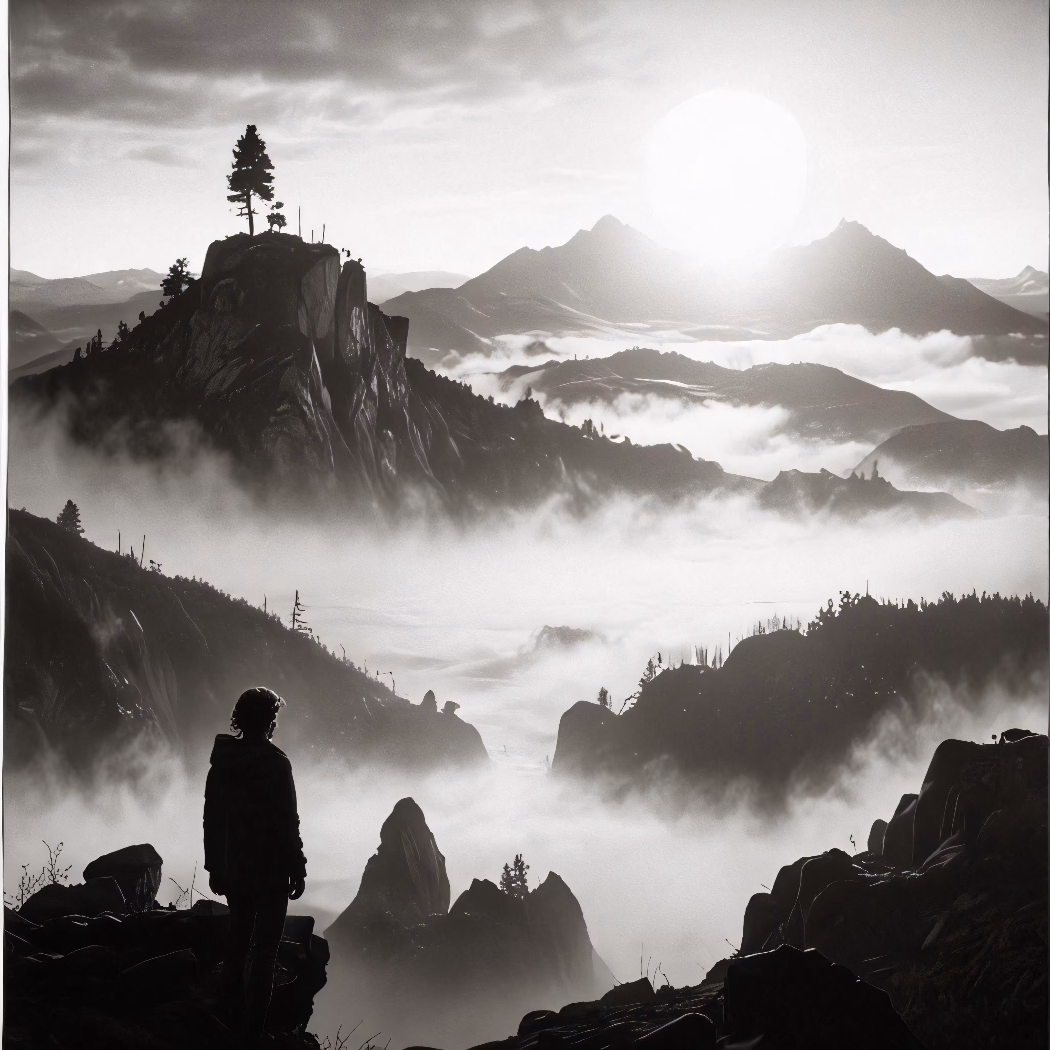 High resolution picture, free to use, the person is standing at the peak with his back to the camera