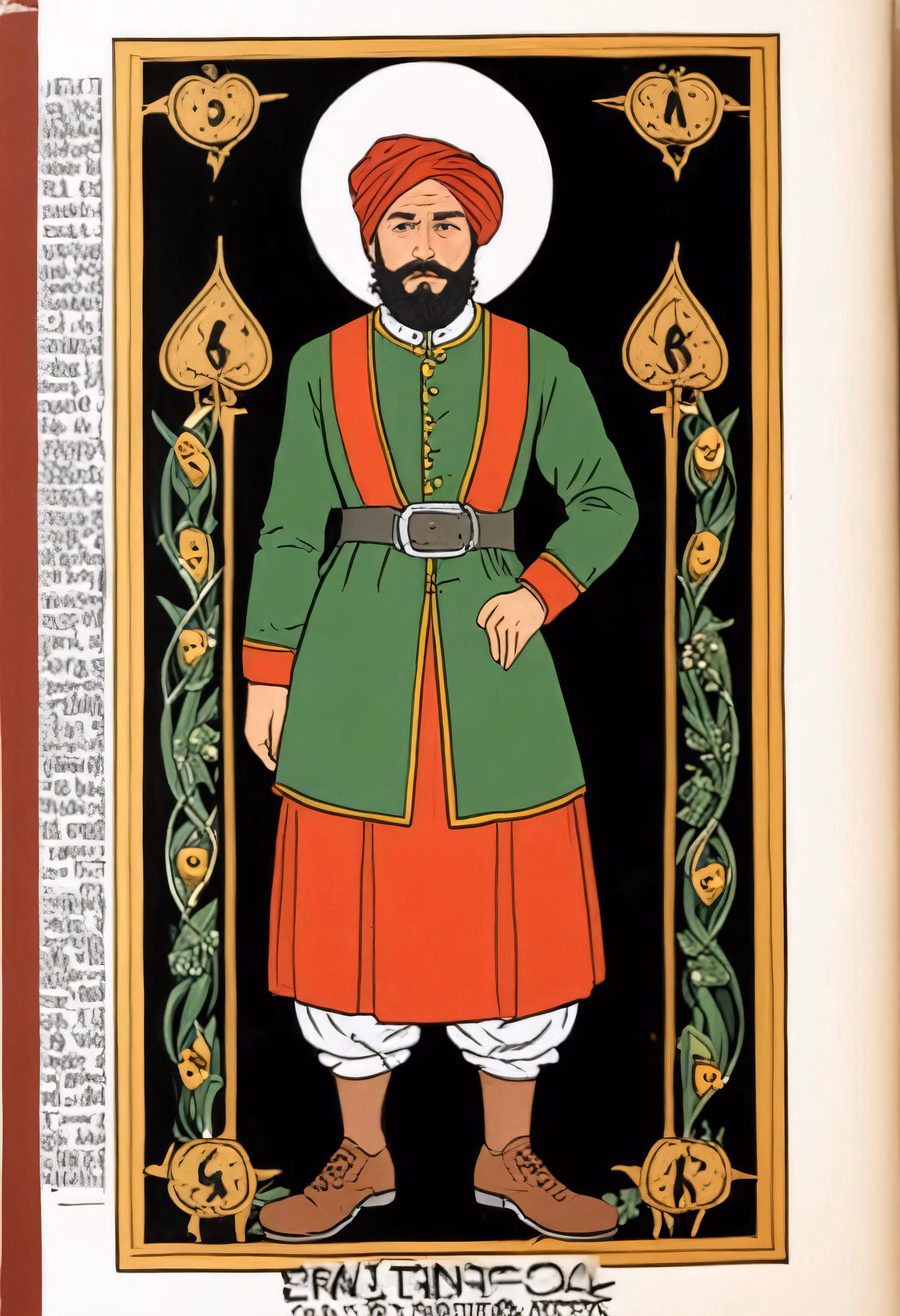 High resolution picture, free to use, the portrait of an indian man in green, orange and red