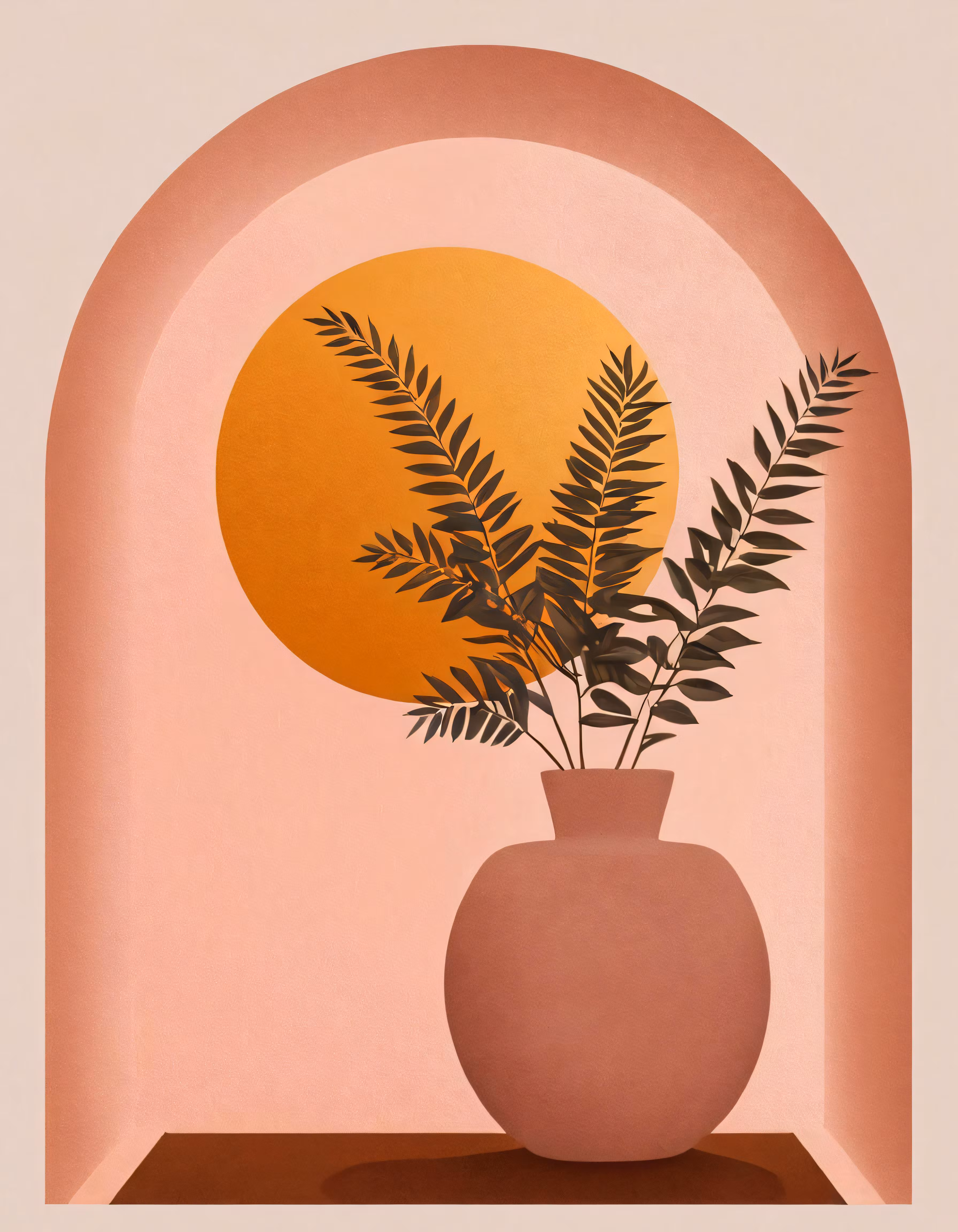High resolution picture, free to use, the potted plant is on a shelf under an arch