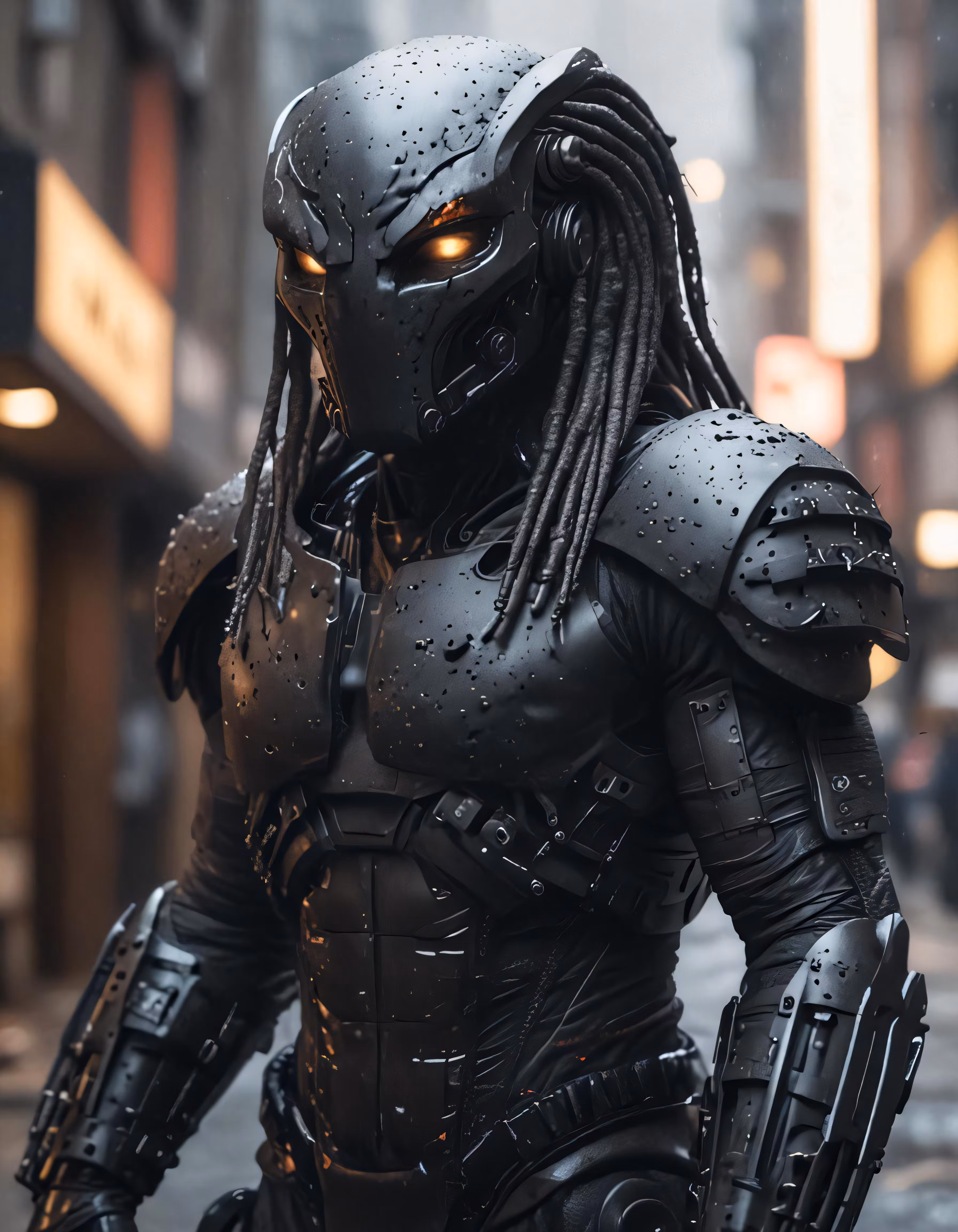 High resolution picture, free to use, the predator has eyes that glow in his dark suit