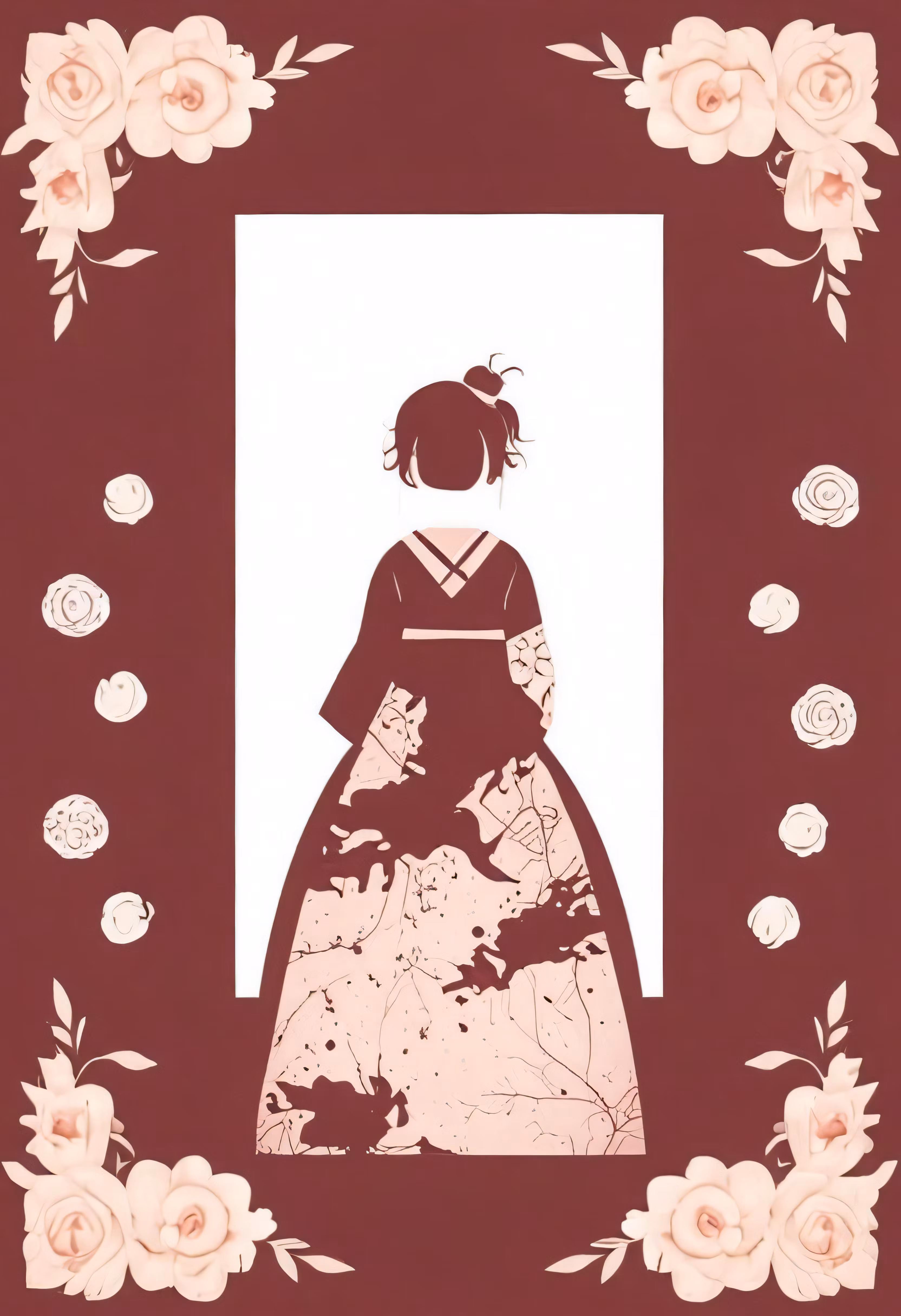 High resolution picture, free to use, the princess is standing in front of a floral frame