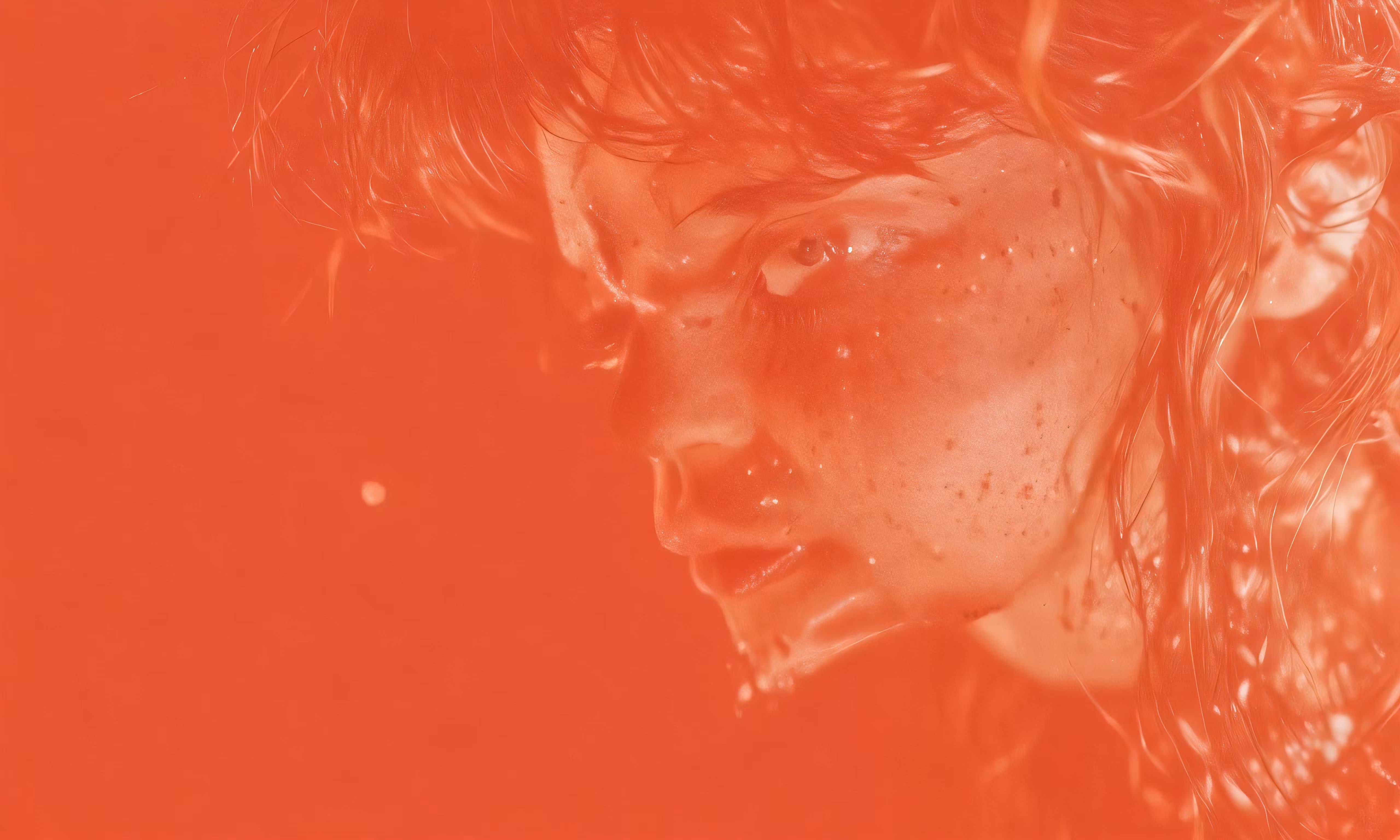 High resolution picture, free to use, the profile of a woman with red hair blowing in the wind