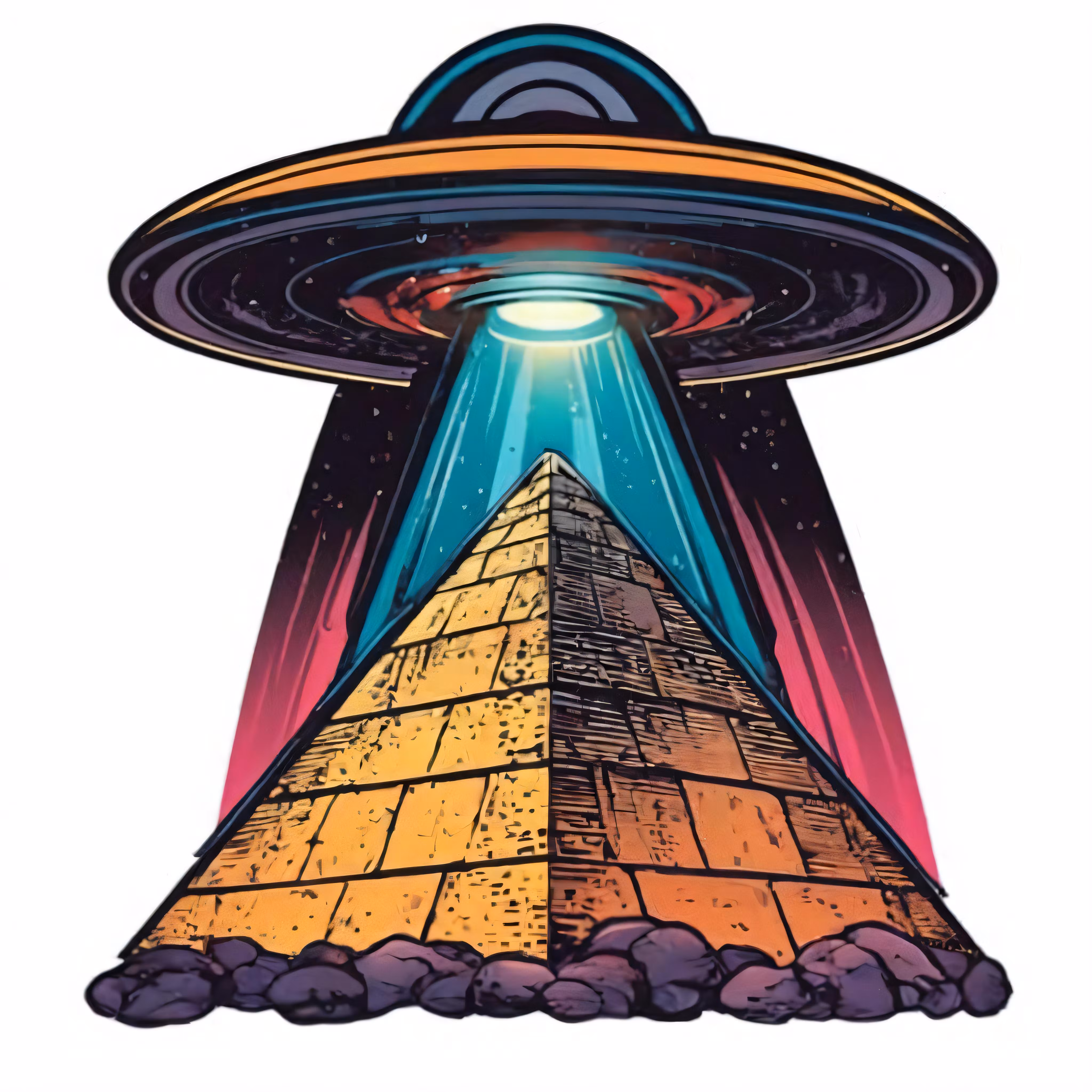 High resolution picture, free to use, the pyramid is being held up to fly in front of an alien spaceship
