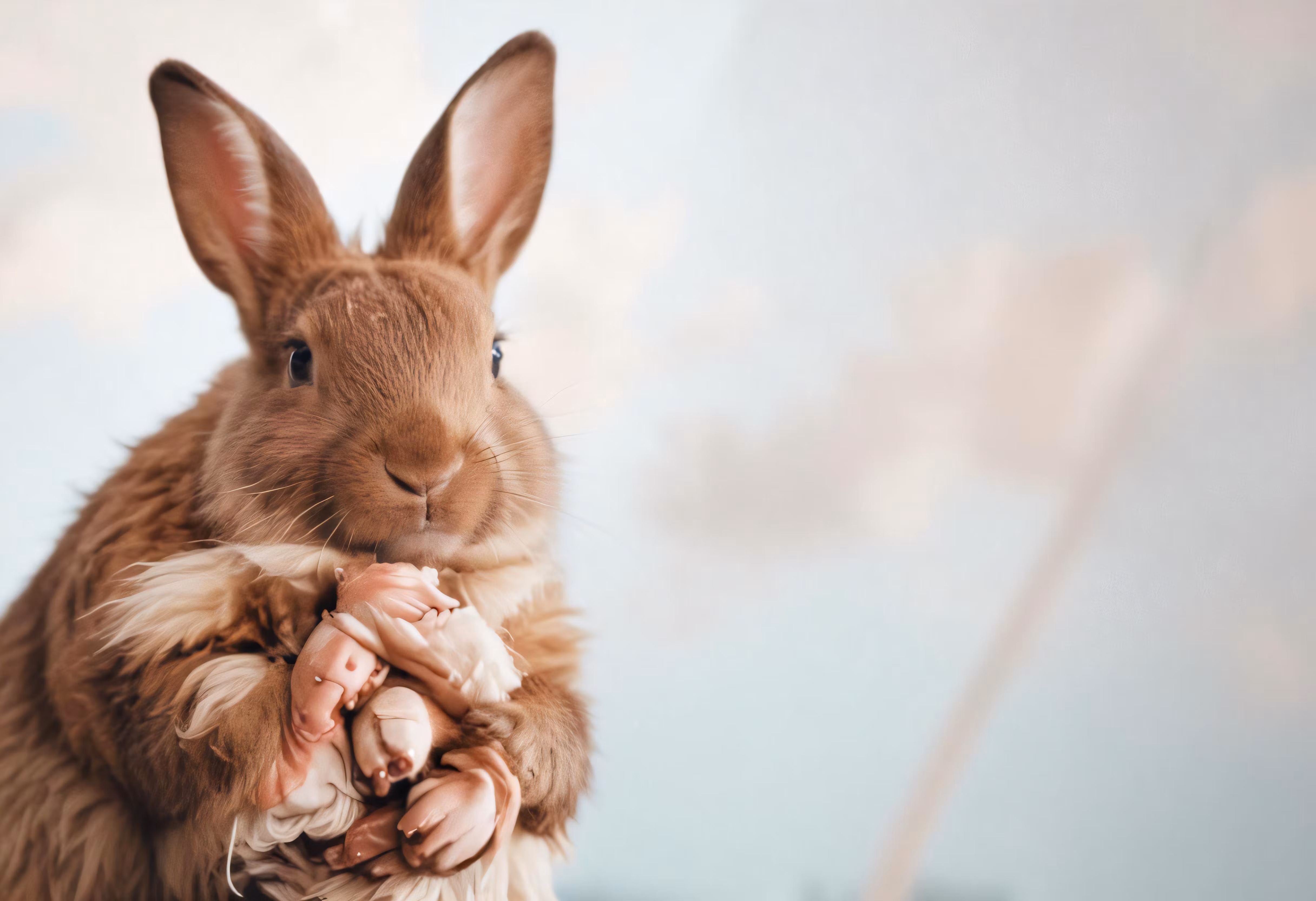 High resolution picture, free to use, the rabbit is holding the small baby bunny