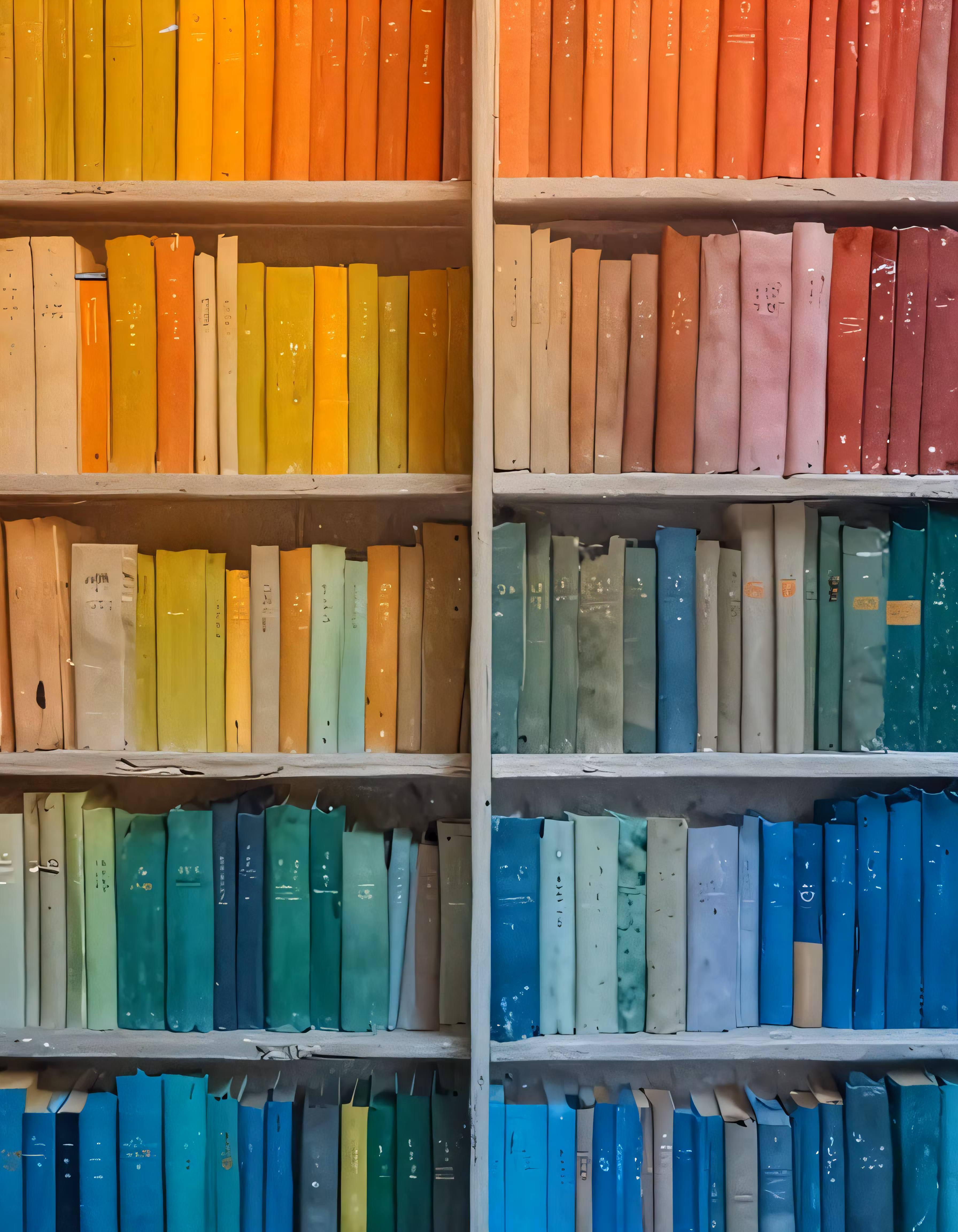 High resolution picture, free to use, the rainbow colored books sit on the book shelf