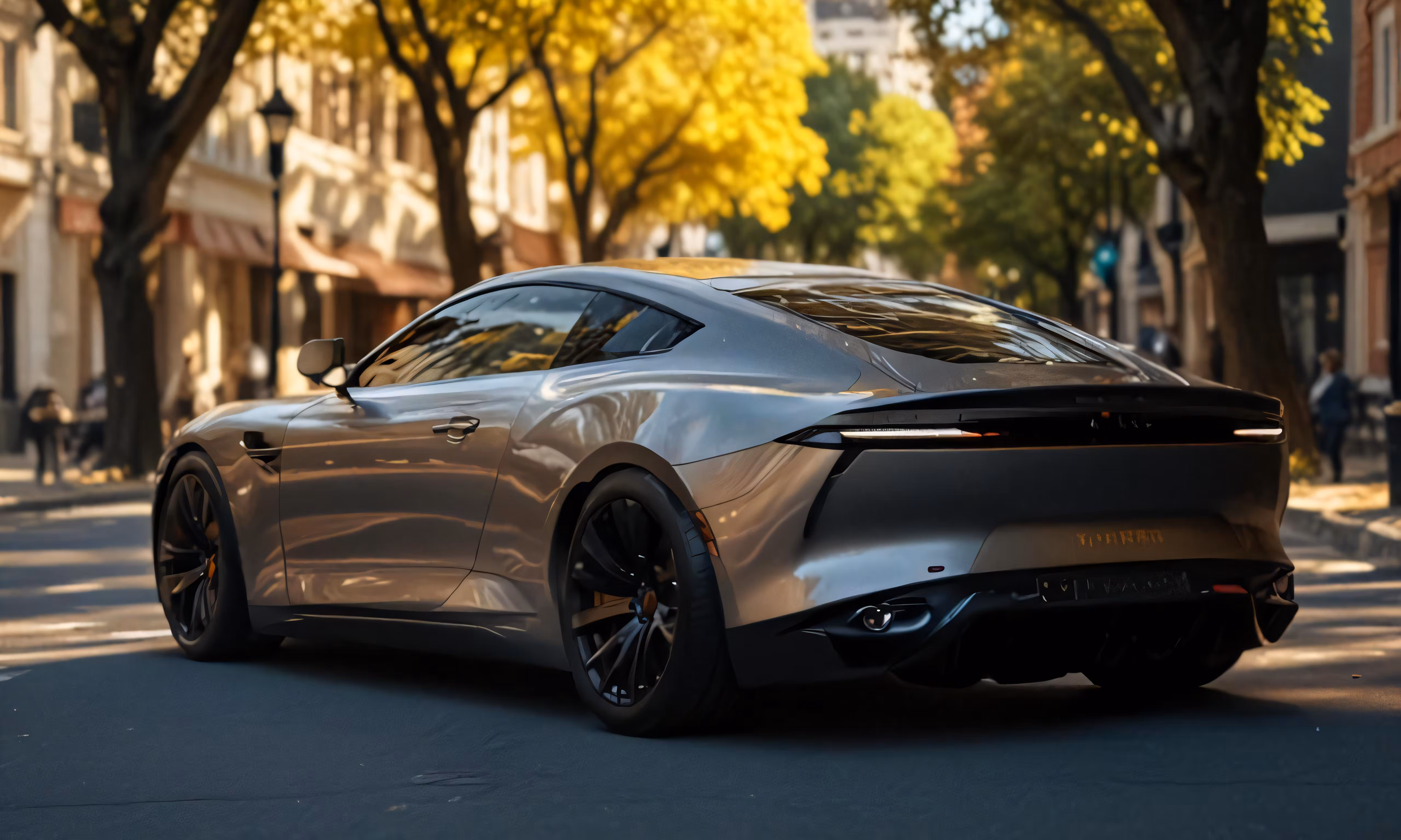 High resolution picture, free to use, the rear end of a gray sports car on a street