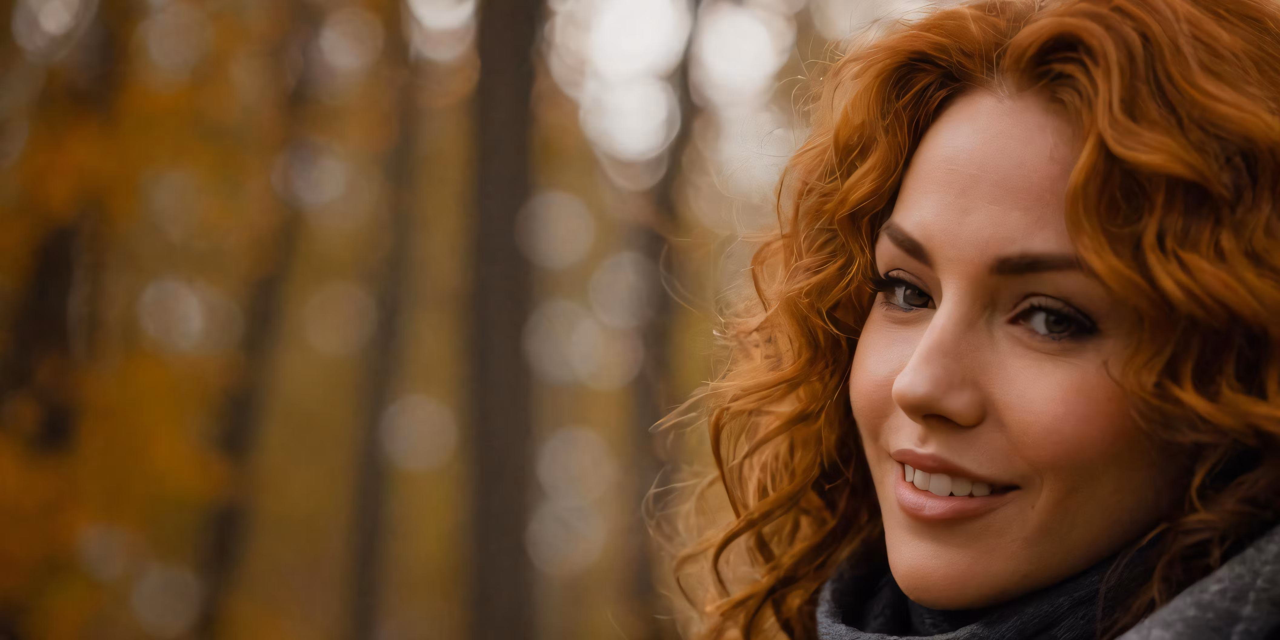 High resolution picture, free to use, the red haired woman has bright, healthy hair