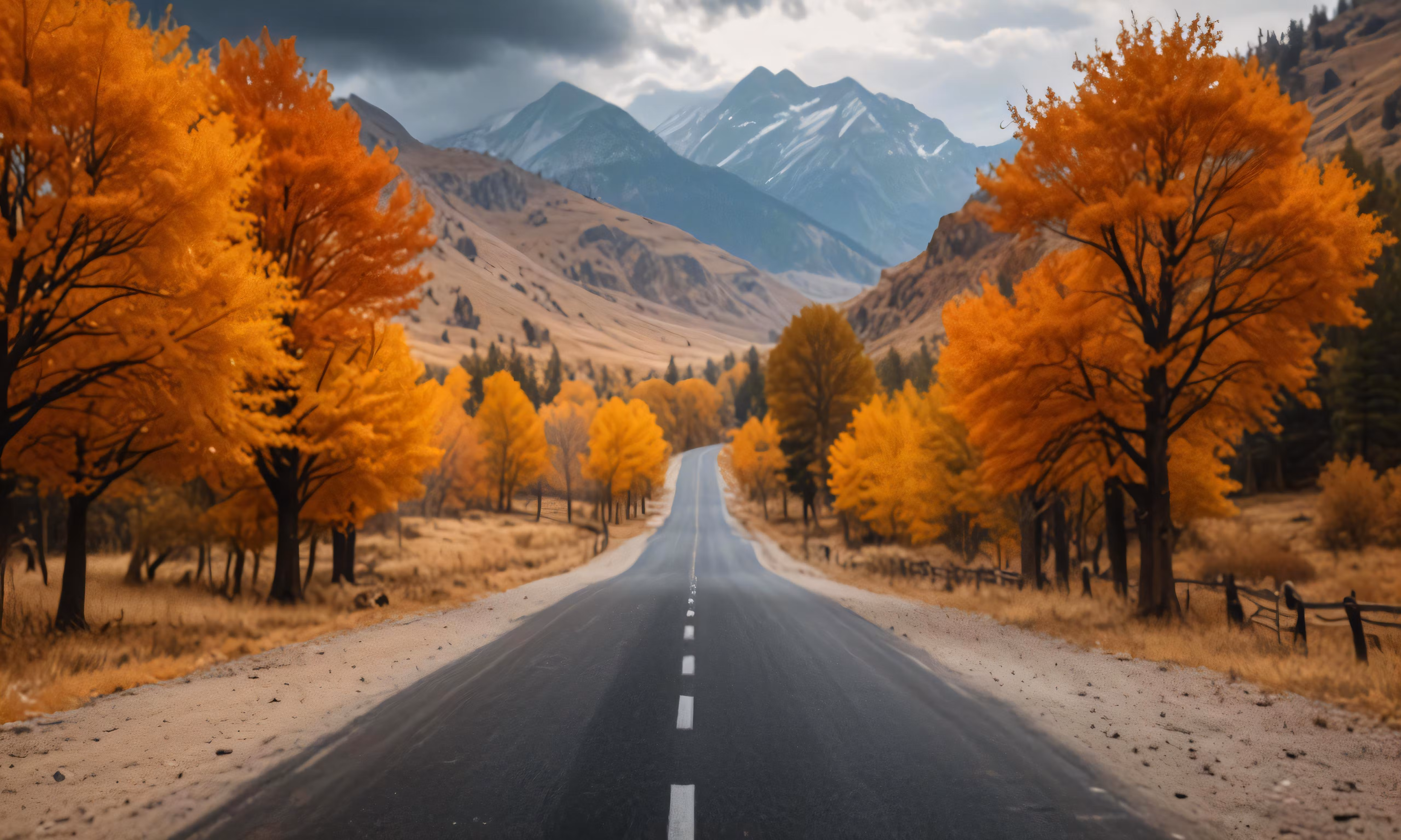 High resolution picture, free to use, the road goes through a vast, remote mountain range