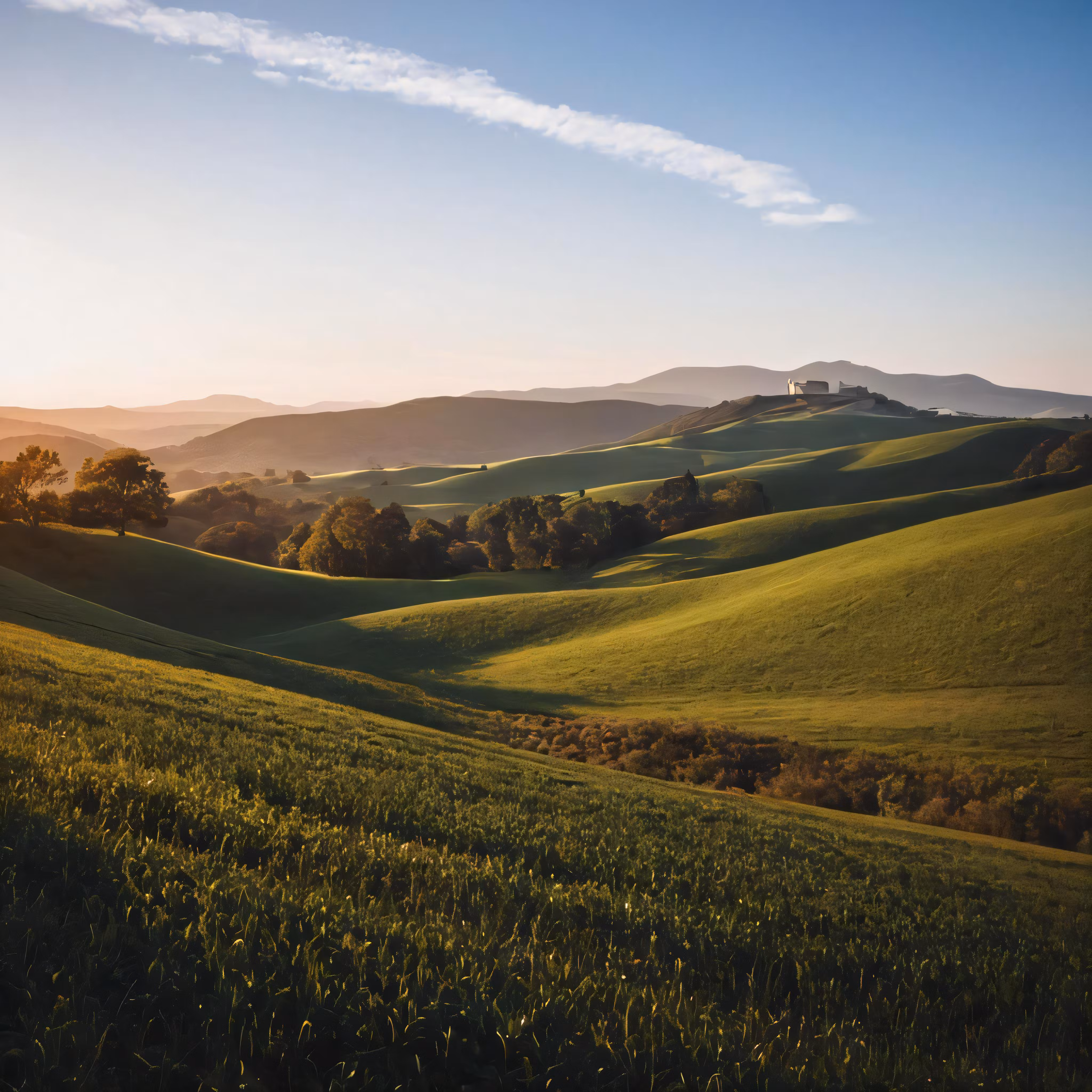High resolution picture, free to use, the rolling hills with grass on them and trees in the distance