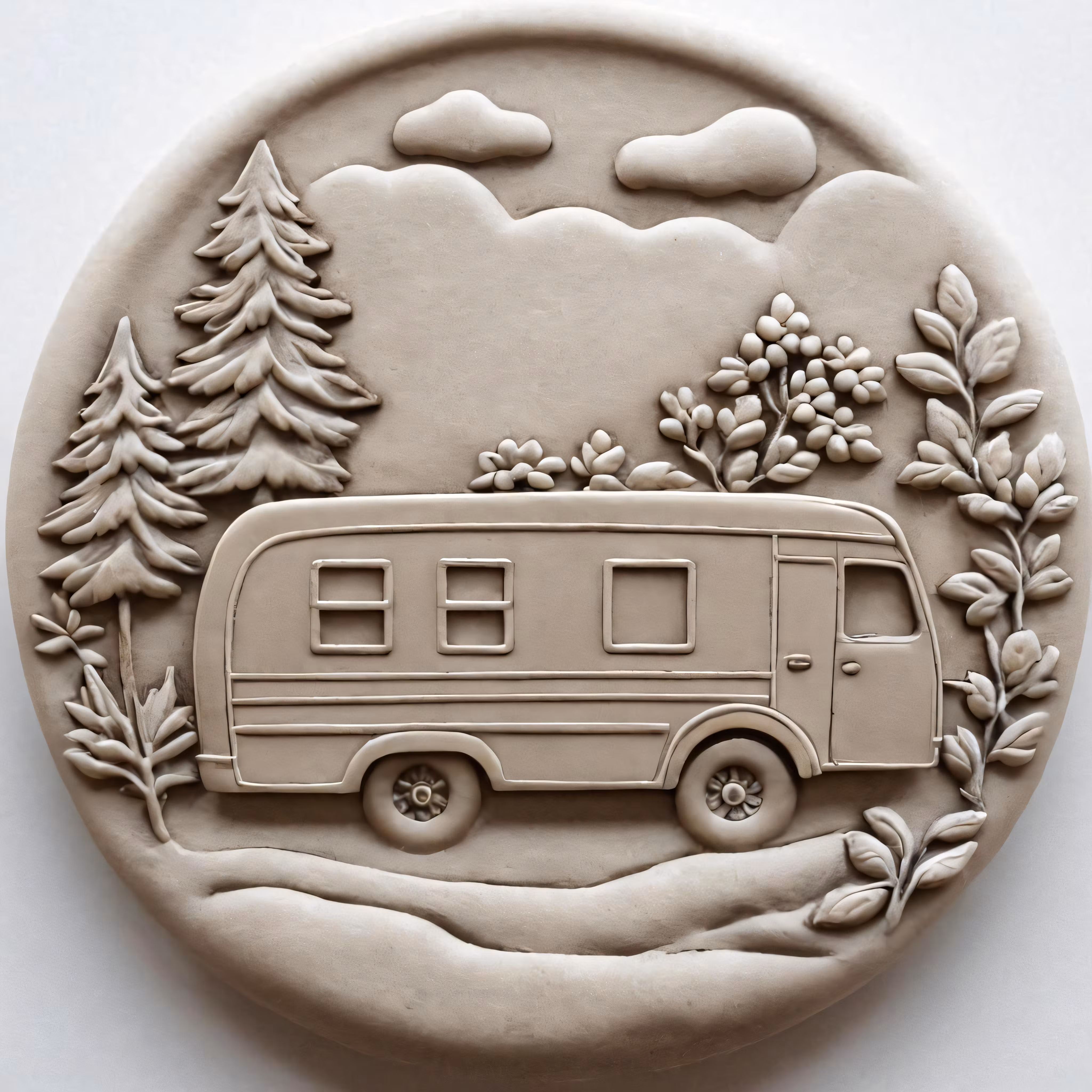 High resolution picture, free to use, the rv is on the surface surrounded by forest