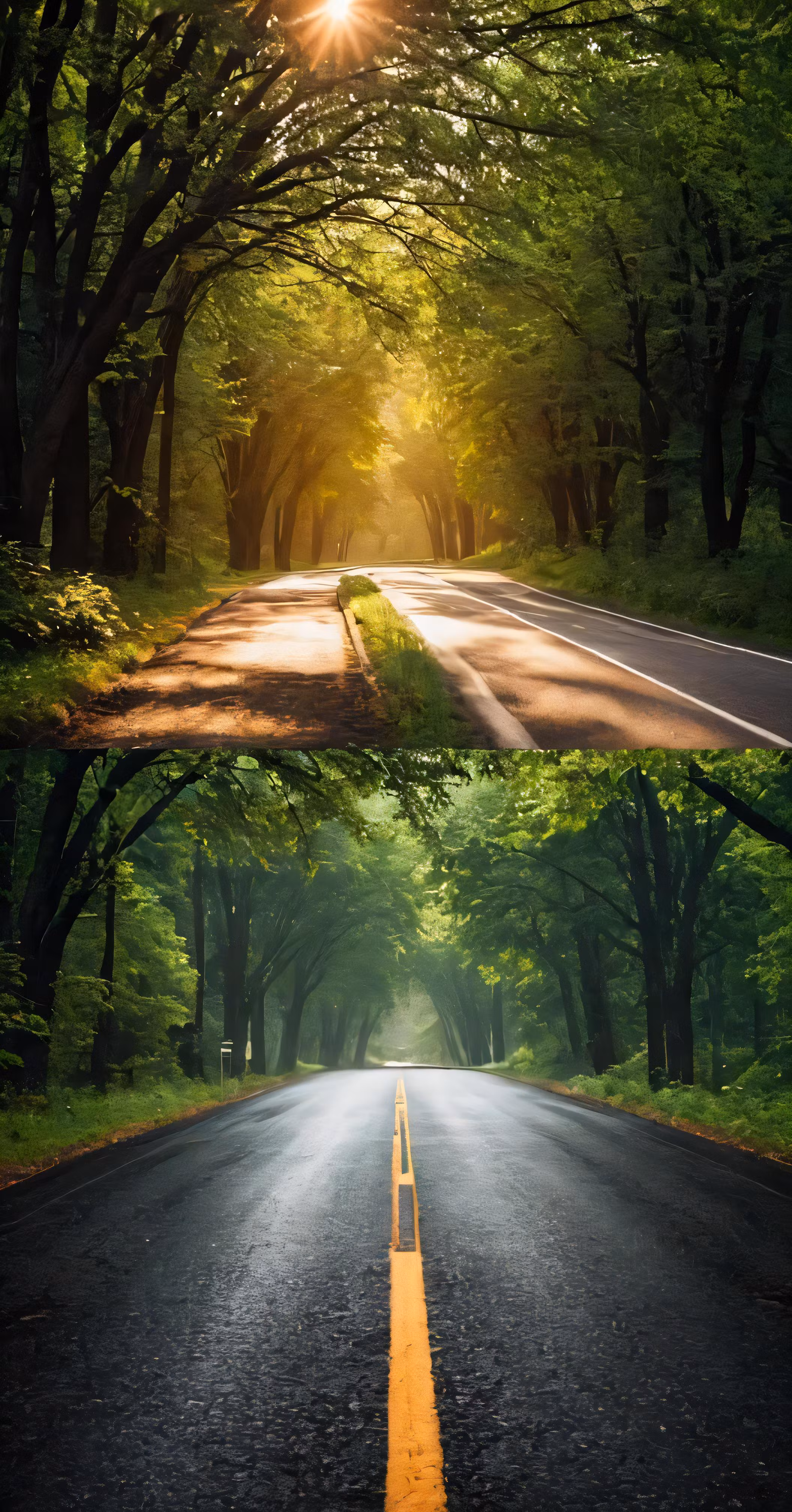 High resolution picture, free to use, the same picture, one shows a country road and another shows a street