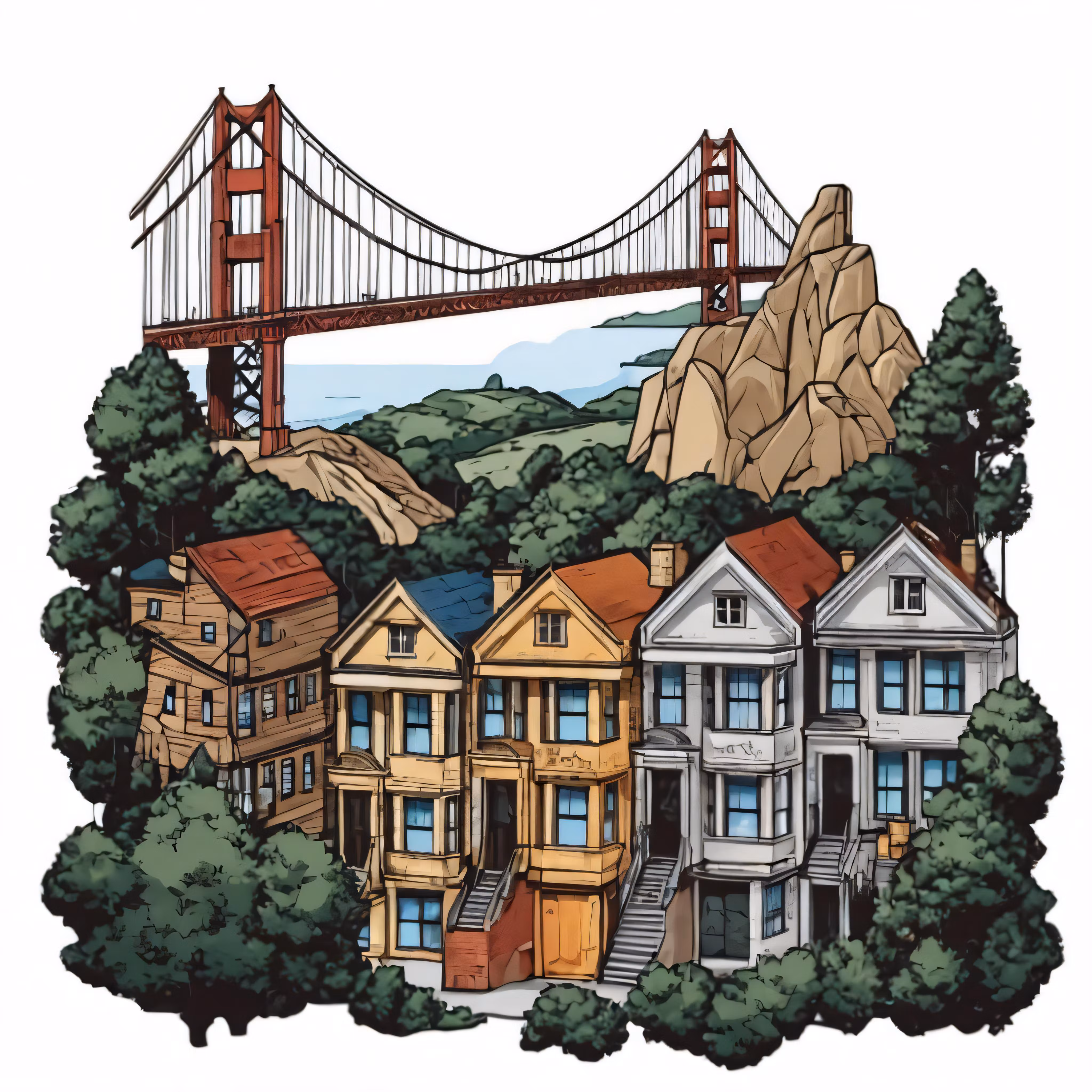High resolution picture, free to use, the san francisco bridge from the hills below it
