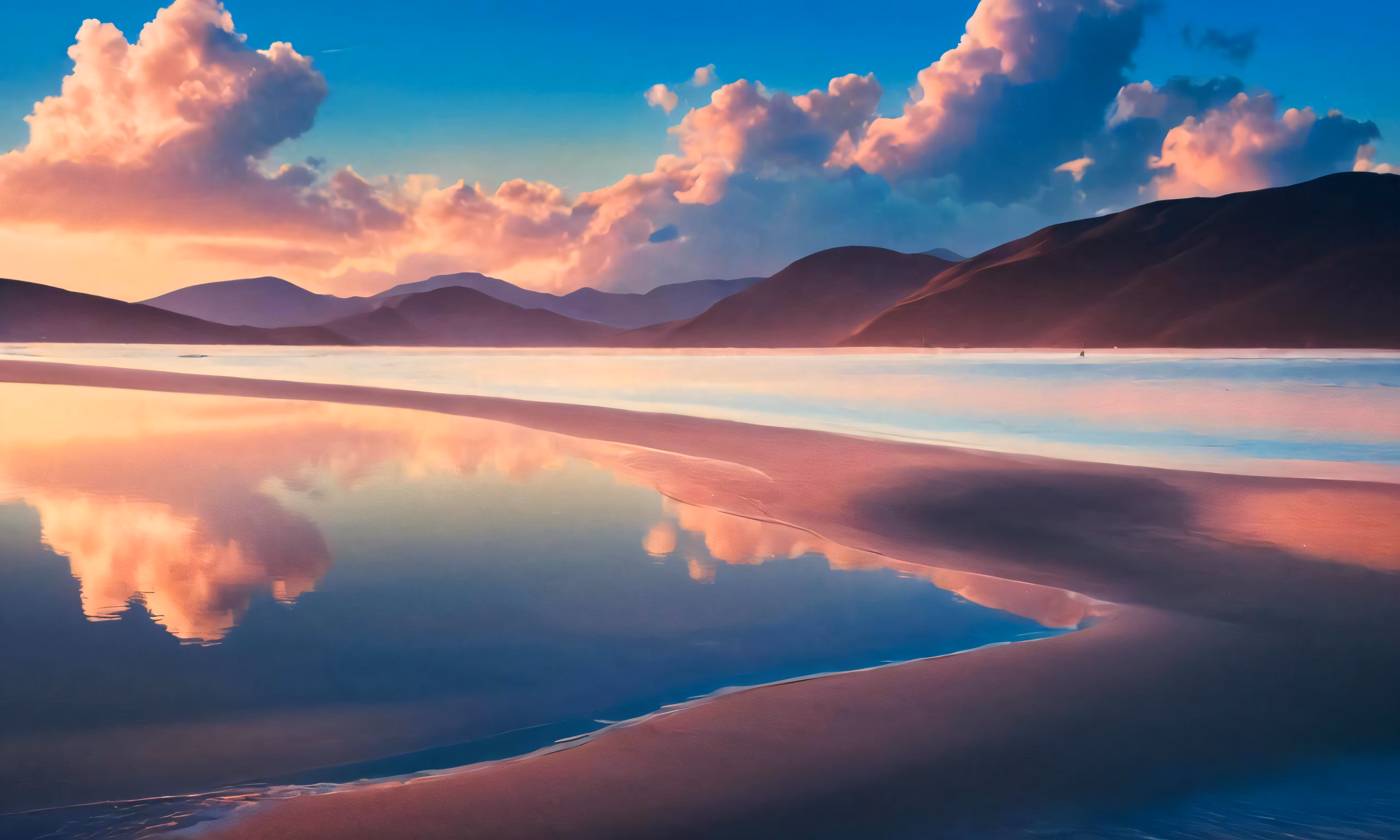High resolution picture, free to use, the sand is reflecting the sky and clouds on water
