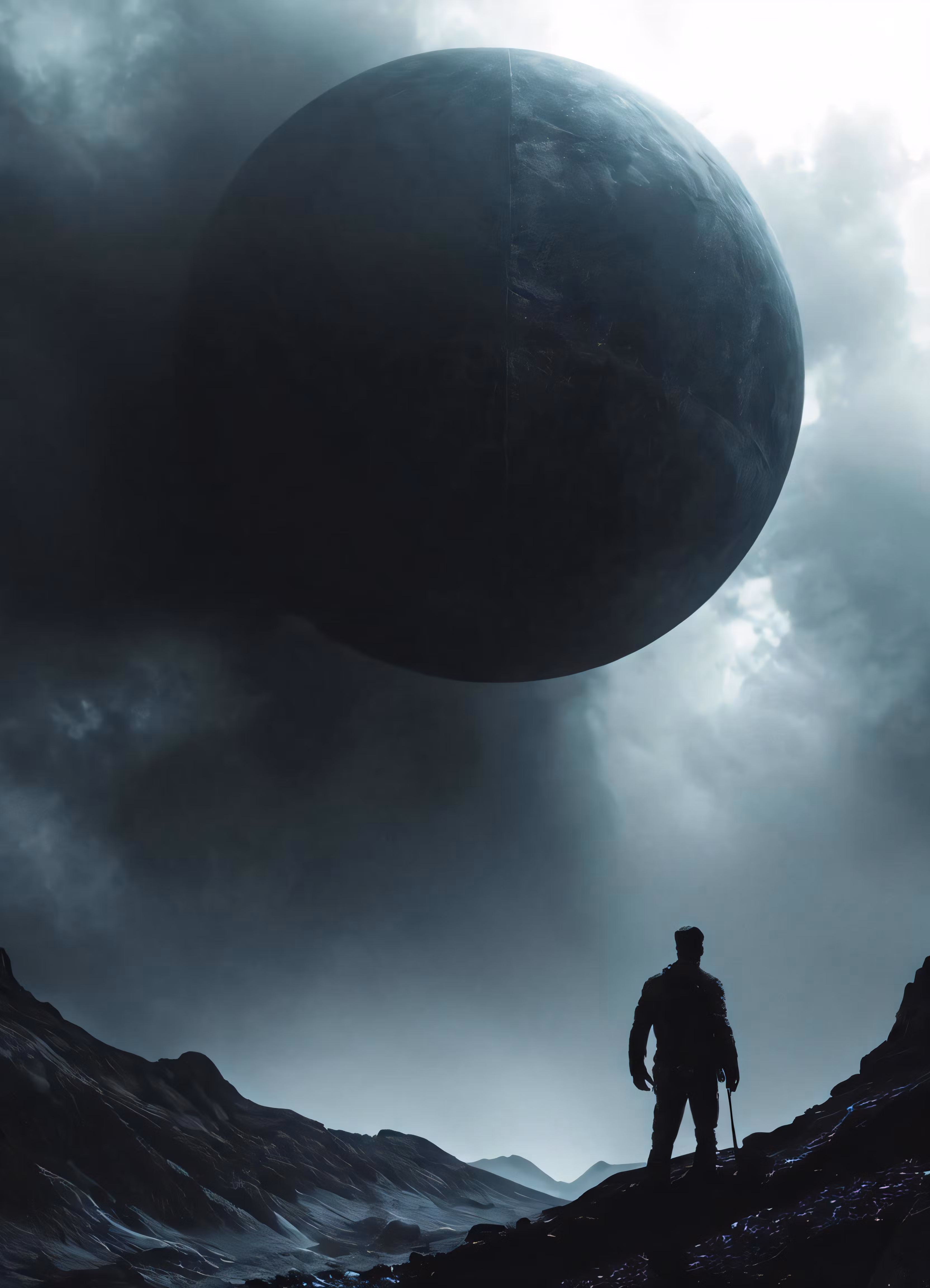 High resolution picture, free to use, the silhouette of a man on a hill looks at something