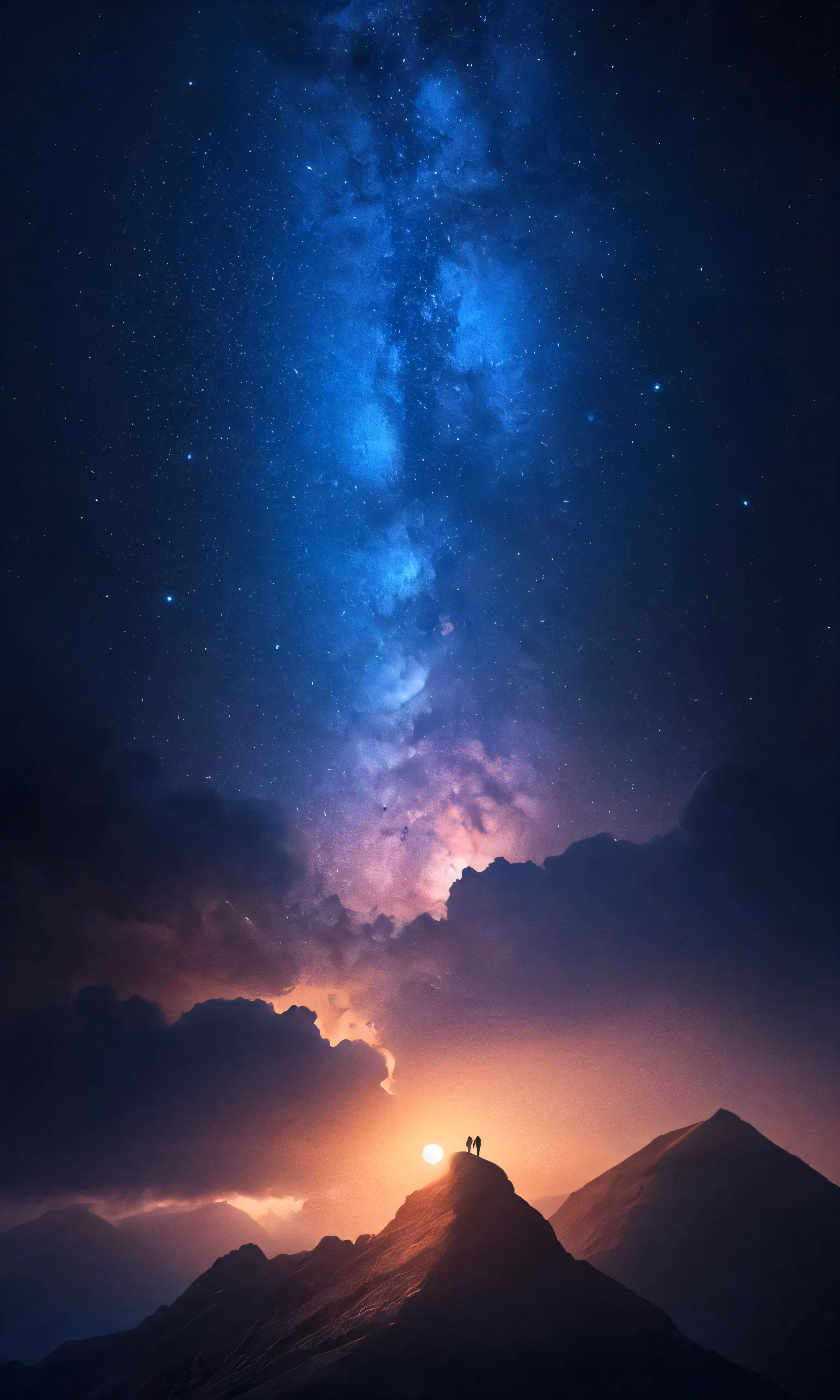 High resolution picture, free to use, the sky and mountains are all stars, but stars in the clouds are reflected in water