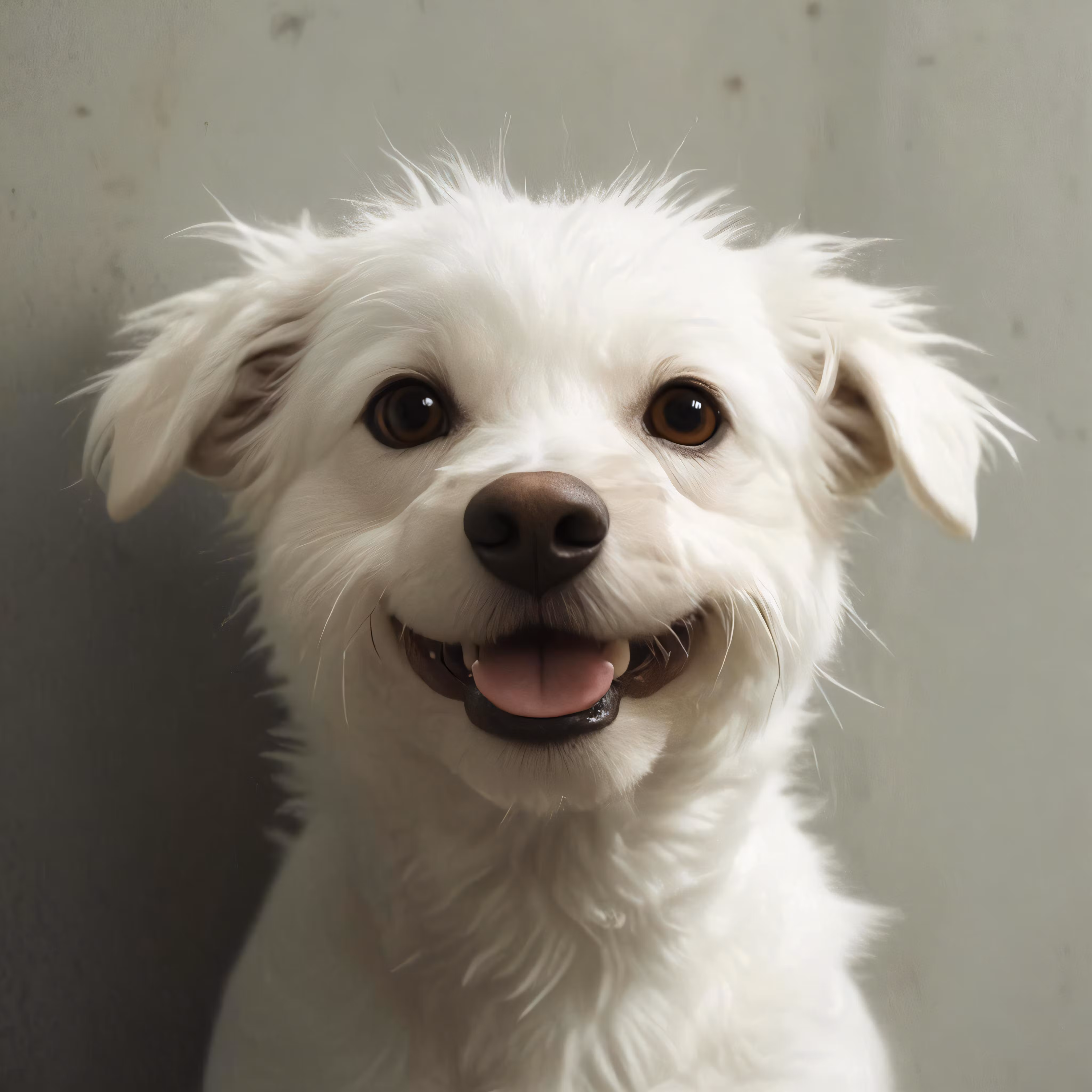 High resolution picture, free to use, the small dog smiles very happy while sitting down
