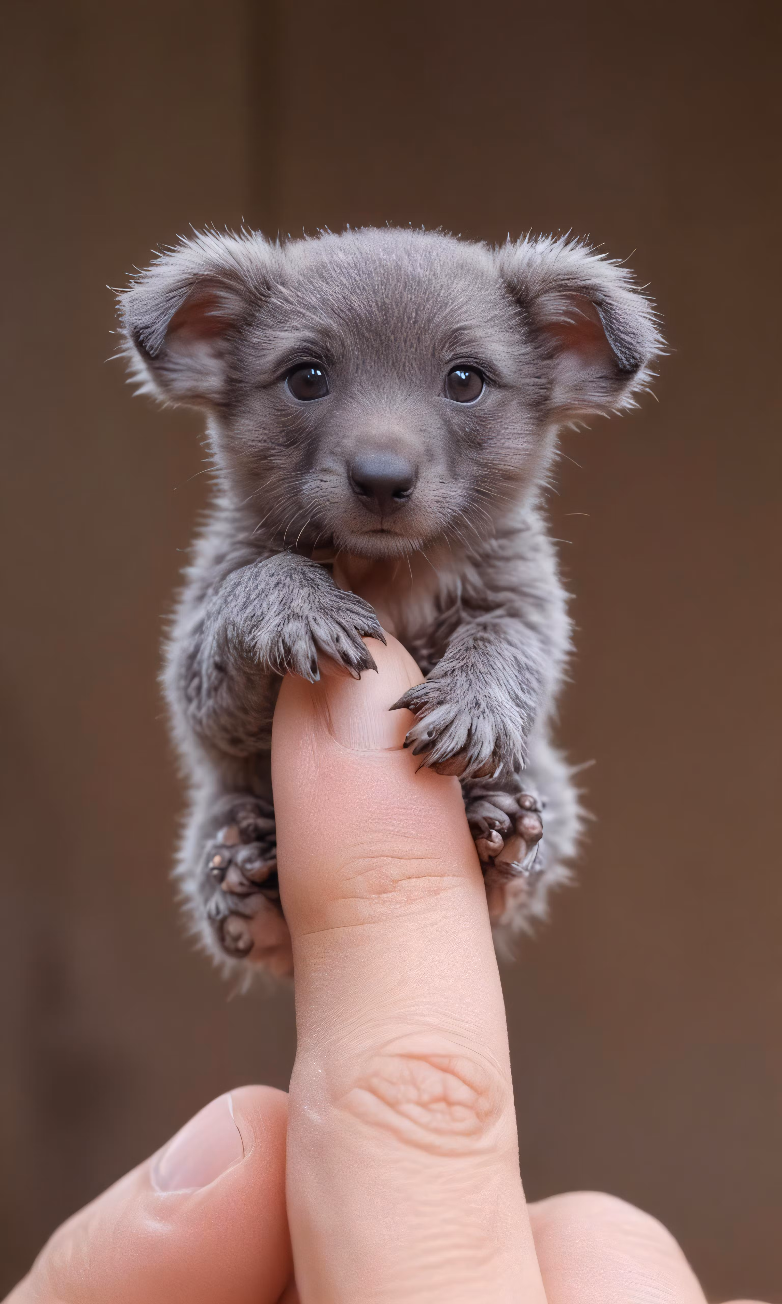 High resolution picture, free to use, the small gray dog is sitting on a finger