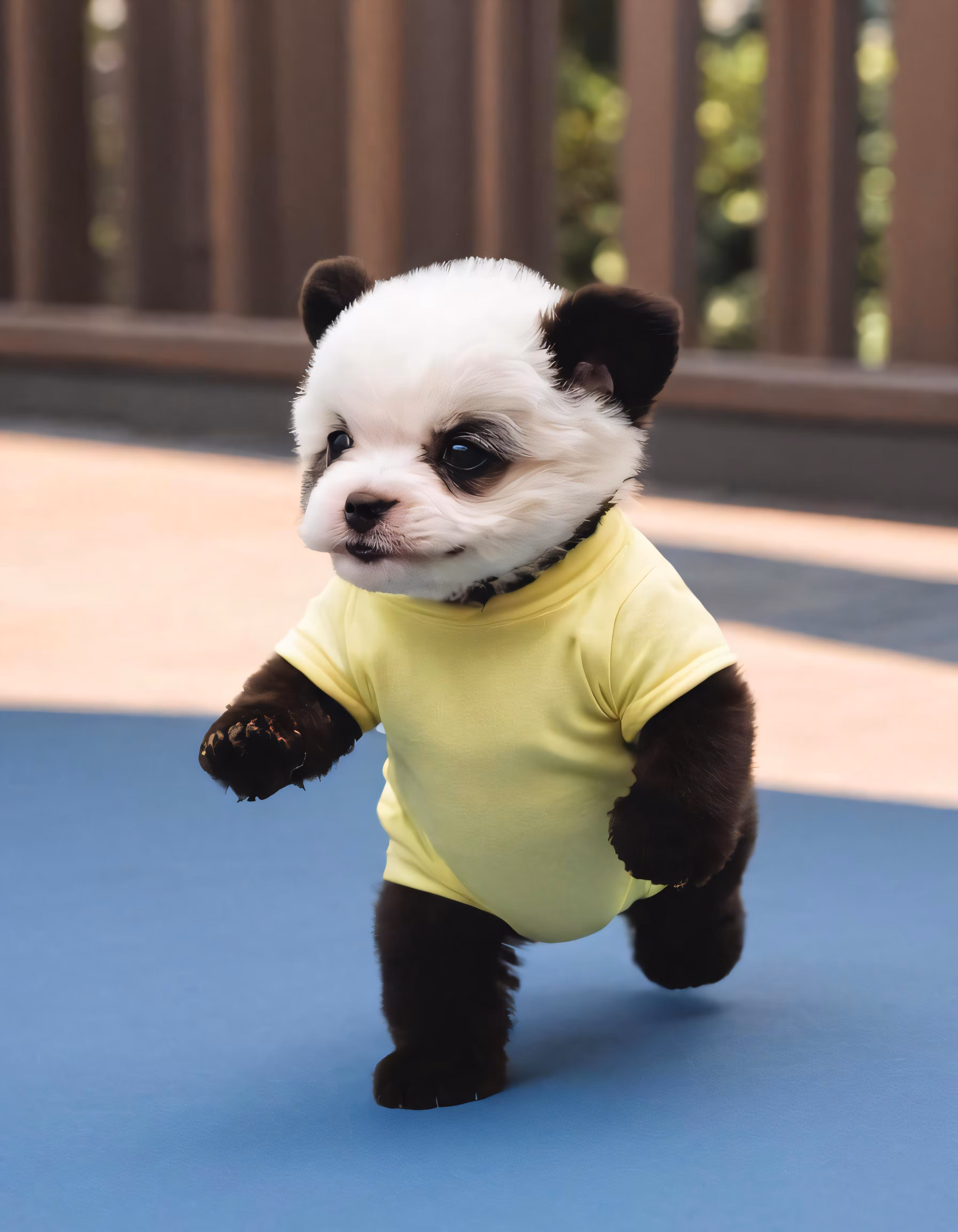 High resolution picture, free to use, the small panda is wearing a t   shirt while running