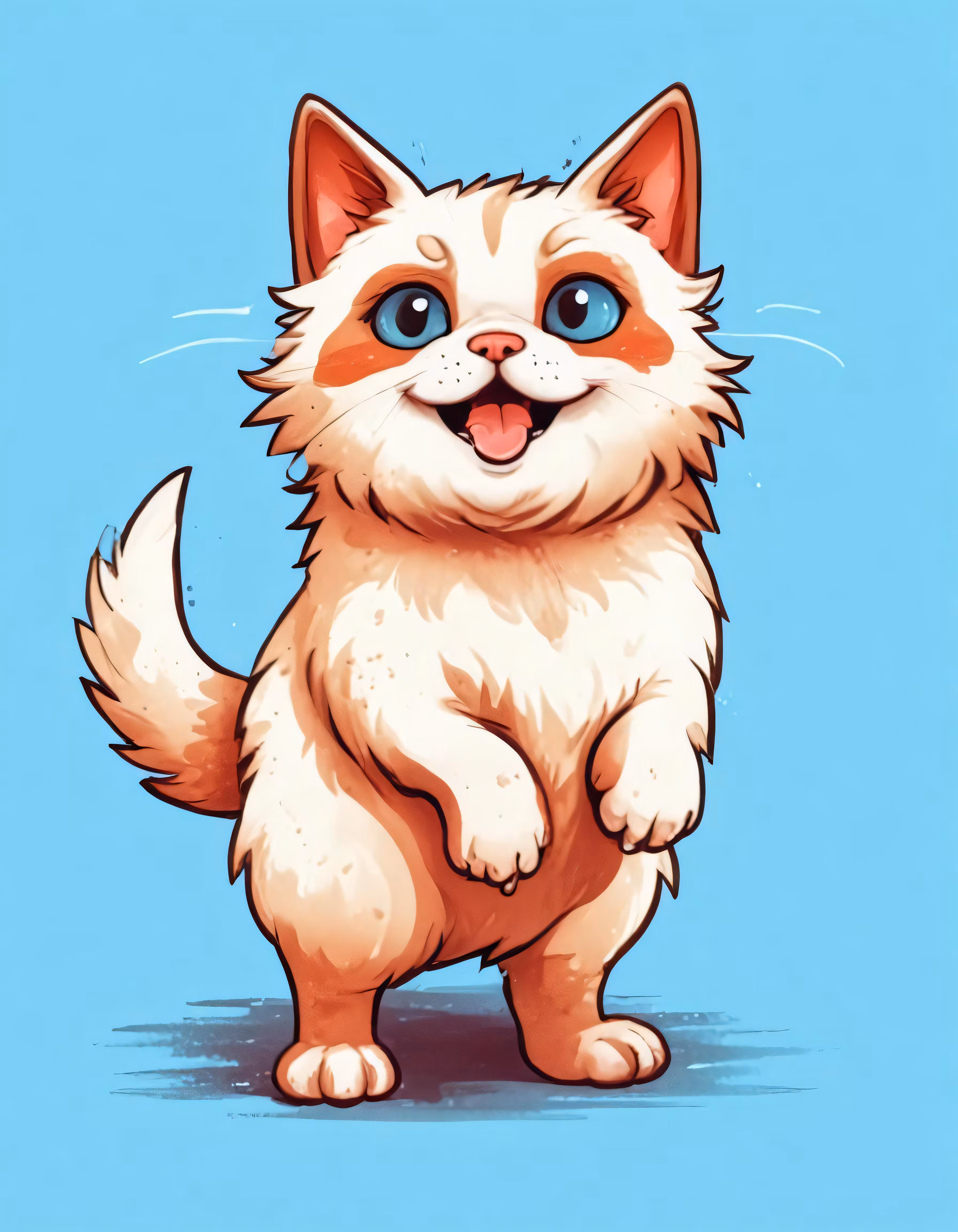 High resolution picture, free to use, the smiling cat has blue eyes and a white tail