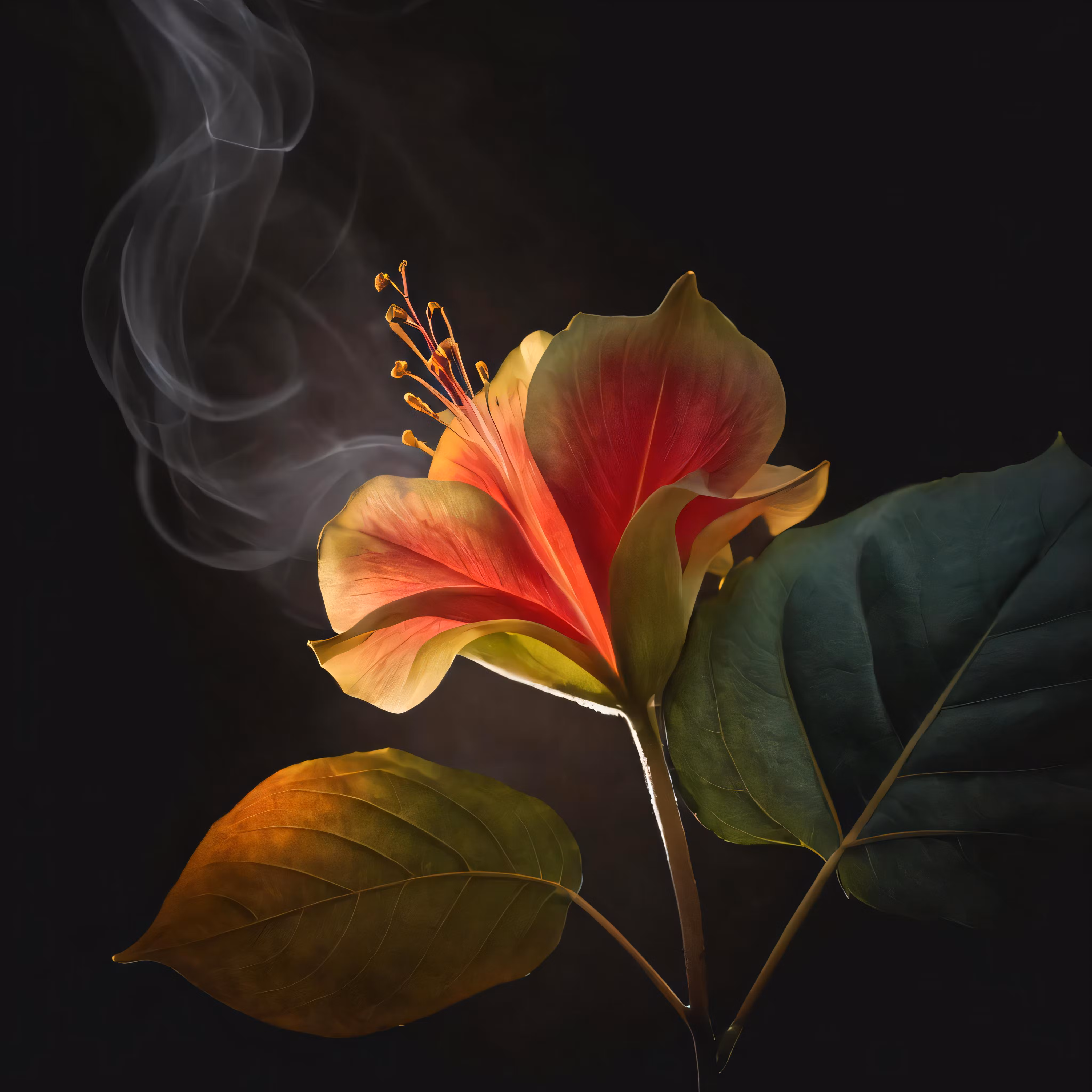 High resolution picture, free to use, the smoke rises above a flower as it rests on the stem