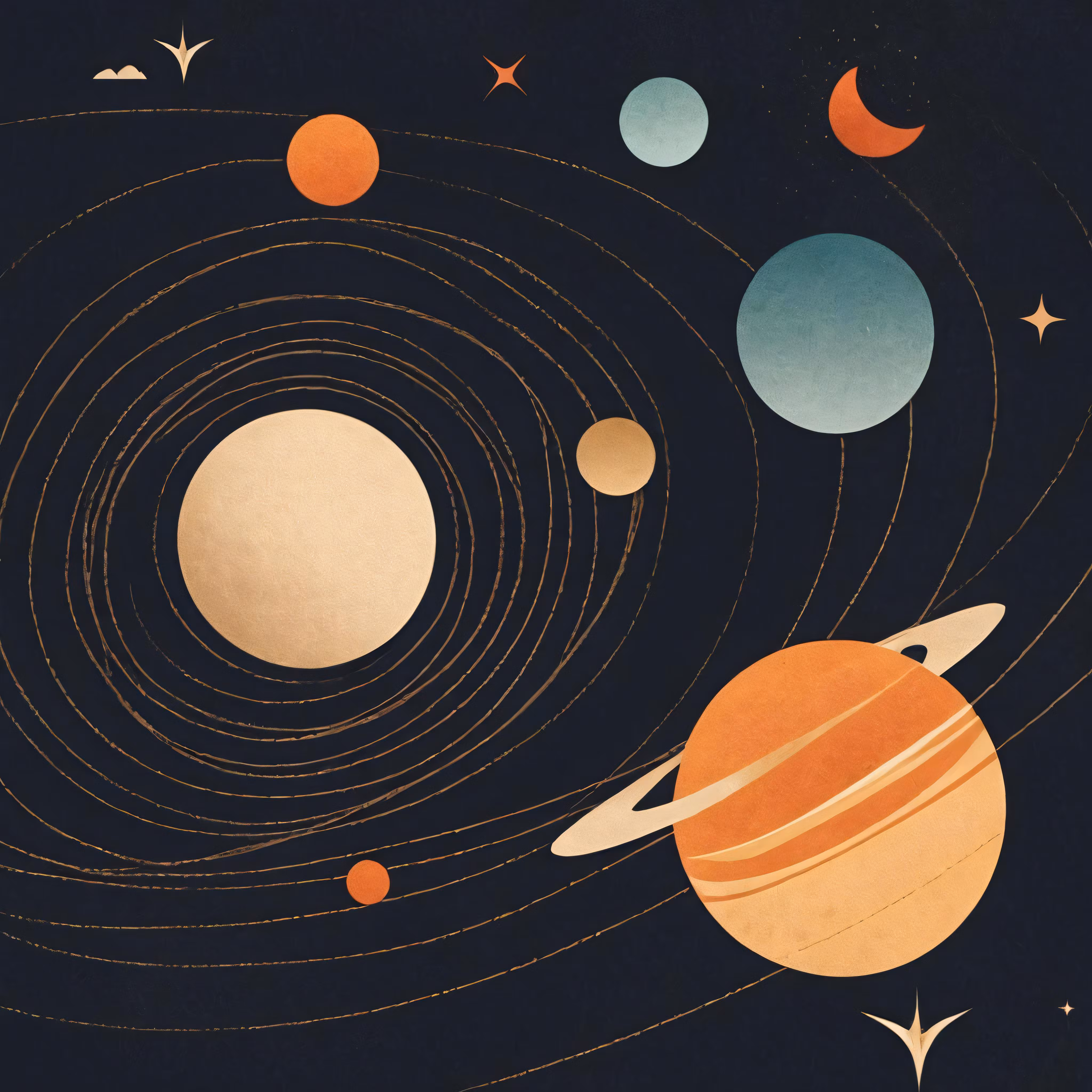 High resolution picture, free to use, the solar system, with five planets and one saturn