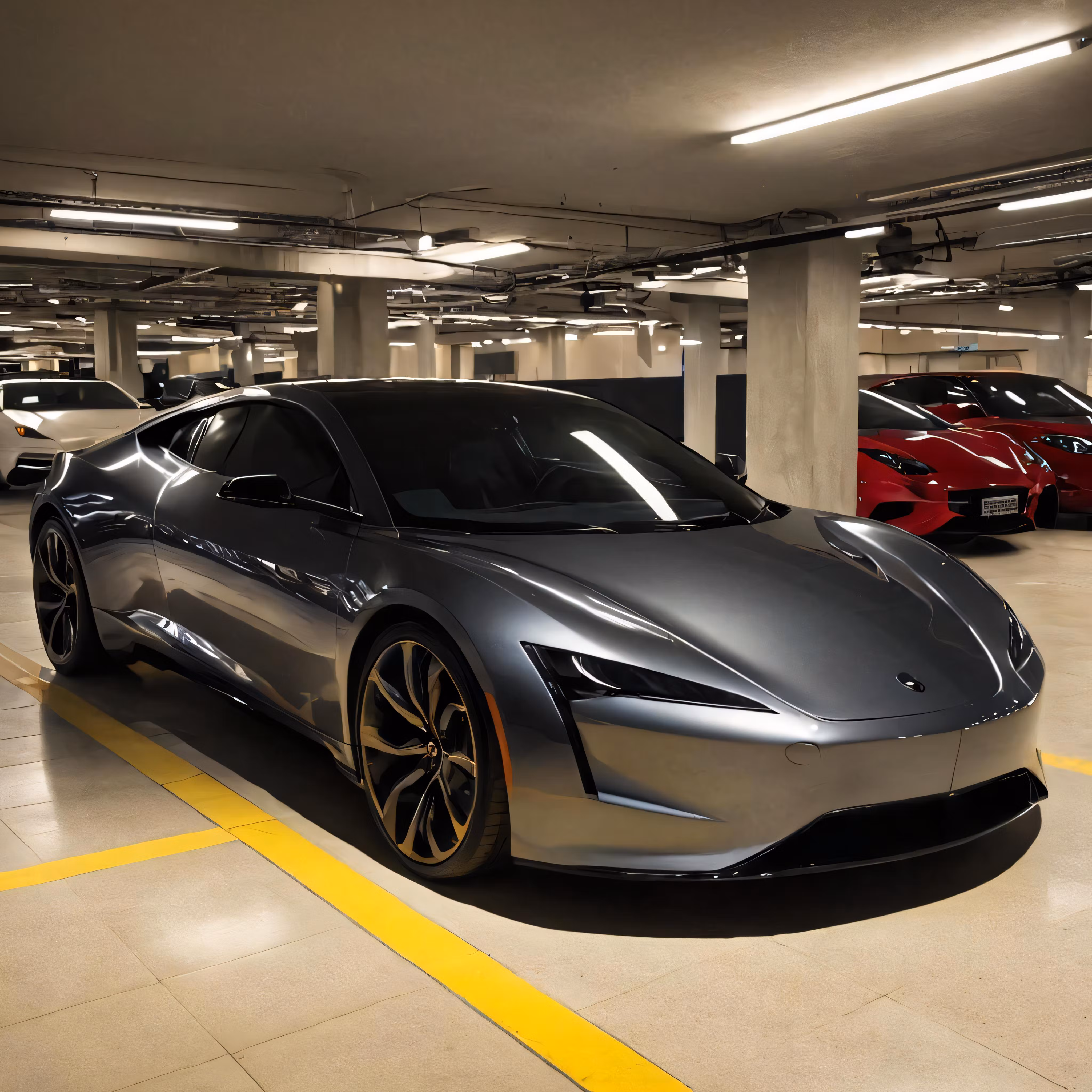 High resolution picture, free to use, the sports car is parked inside of the parking garage