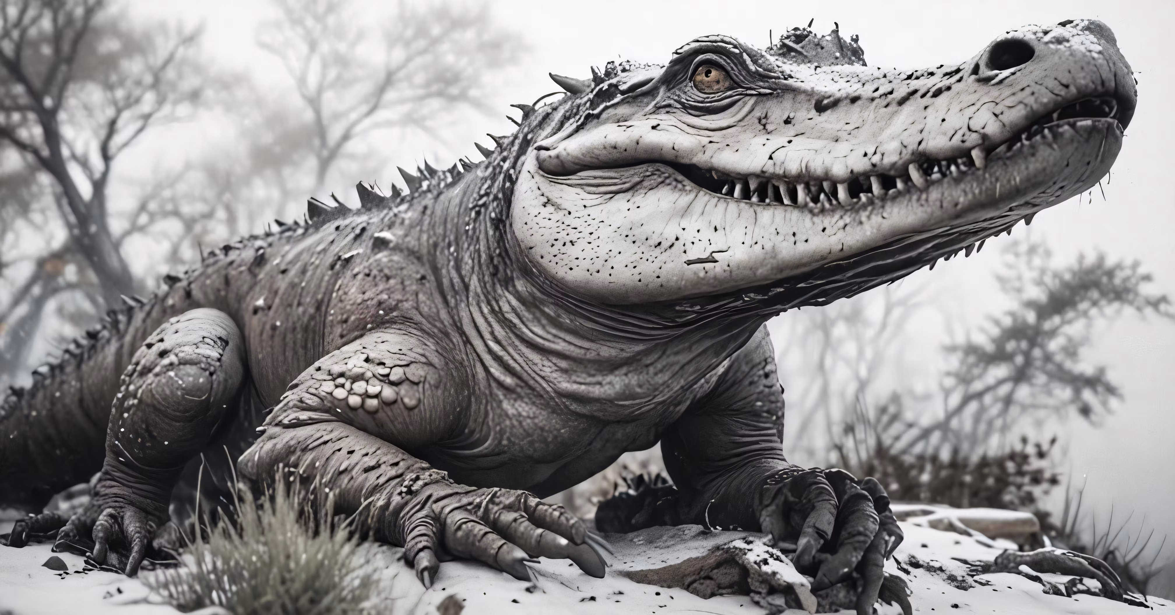 High resolution picture, free to use, the statue of an alligator is in a wooded area