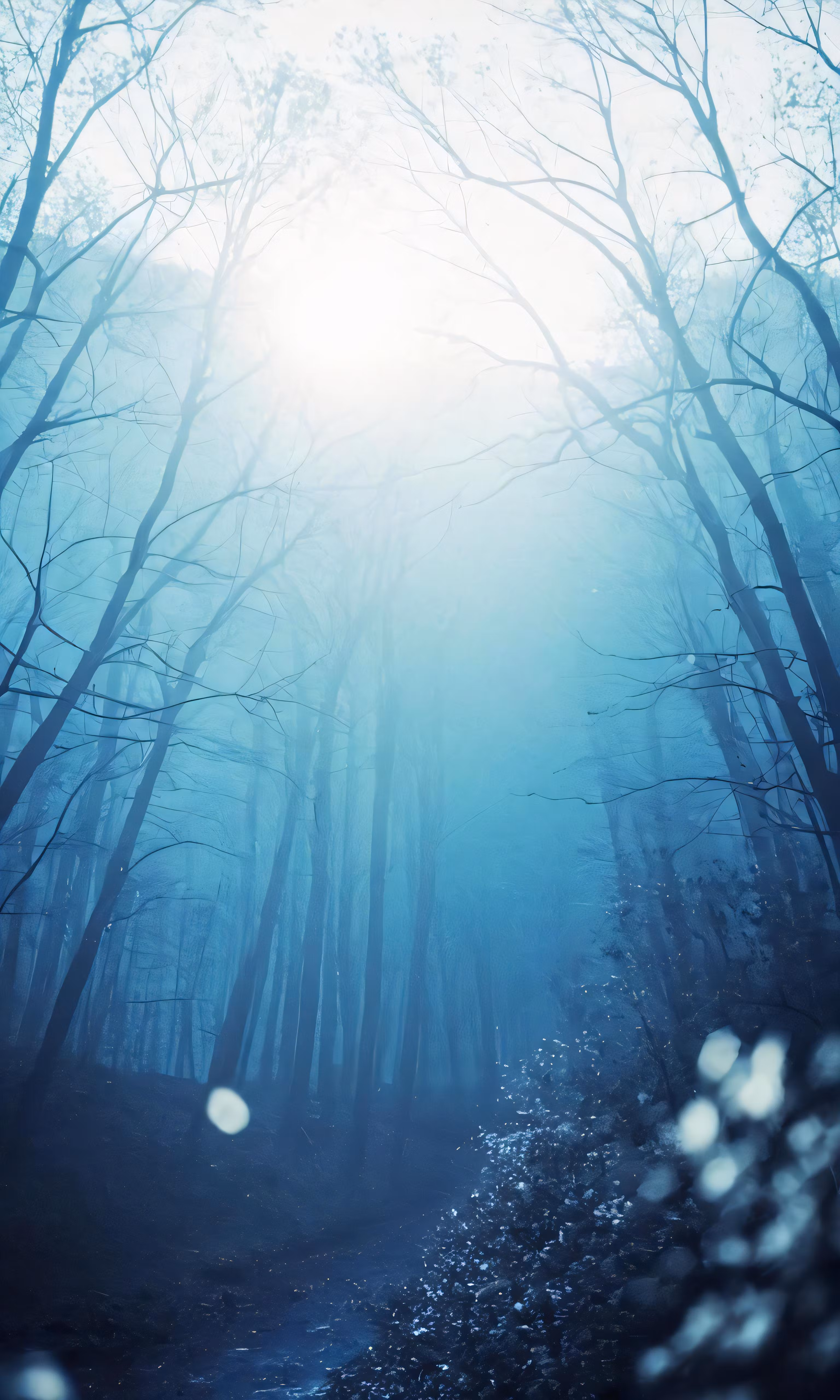 High resolution picture, free to use, the sun is peeking through the trees in the fog