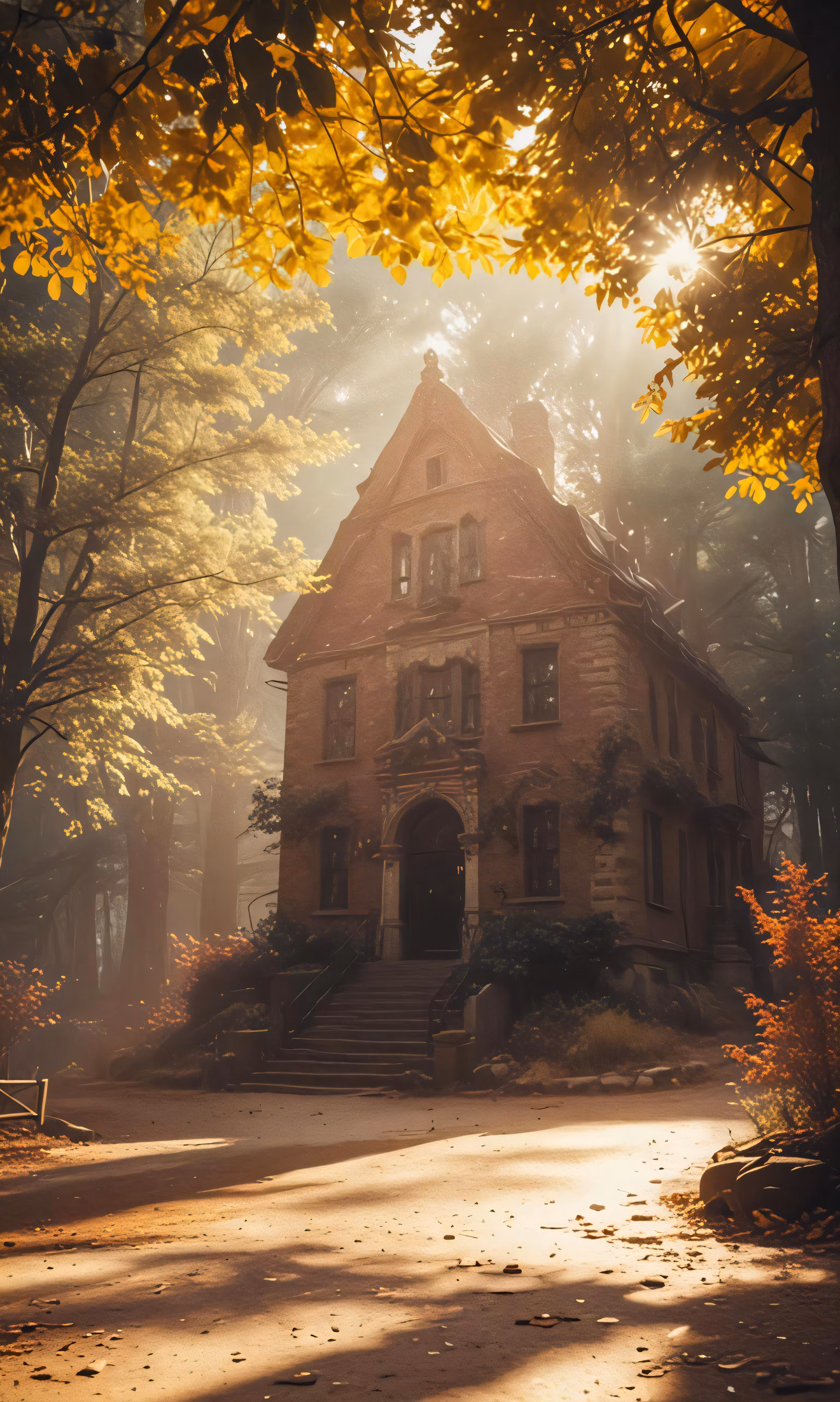High resolution picture, free to use, the sun is shining down on a small house